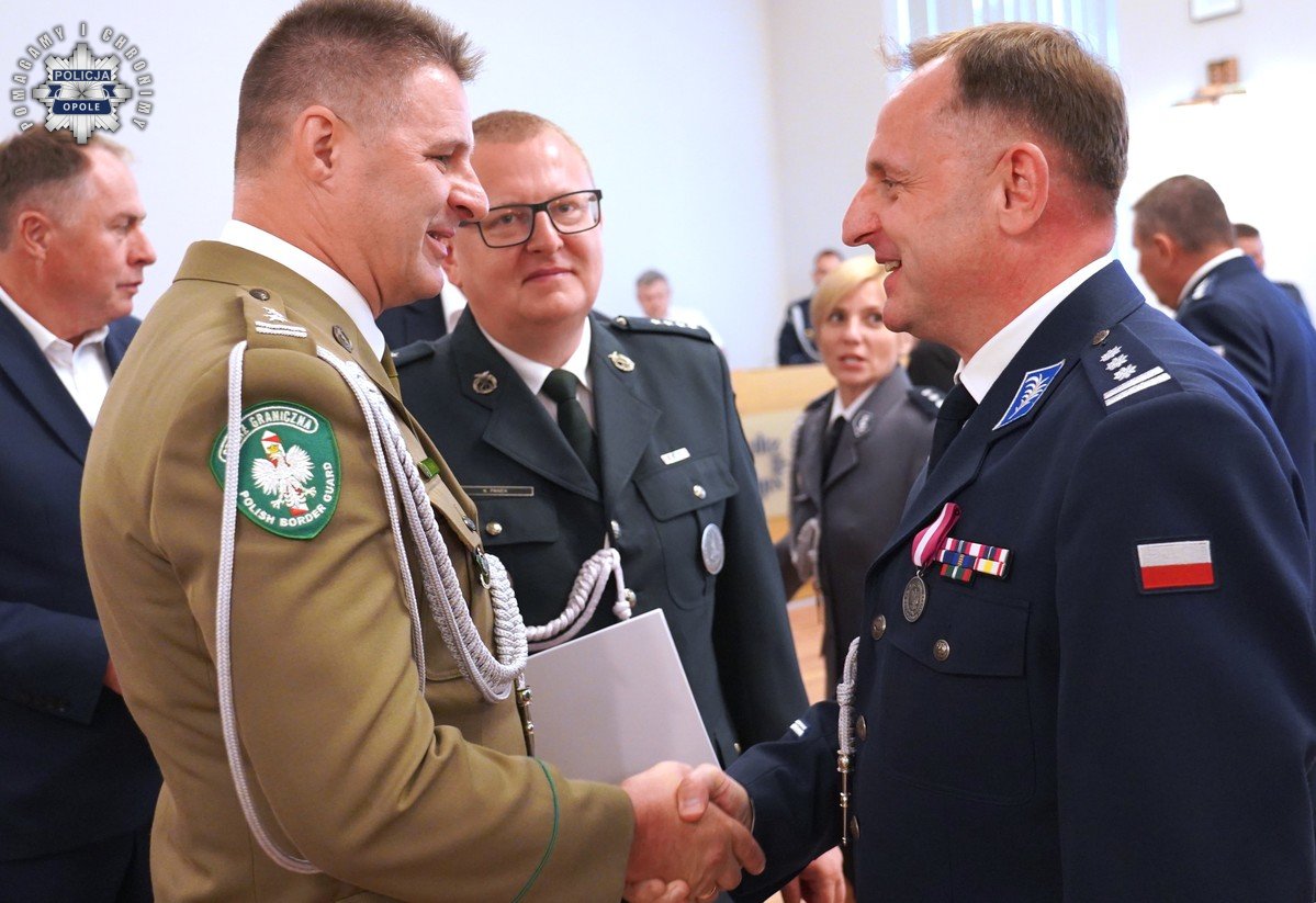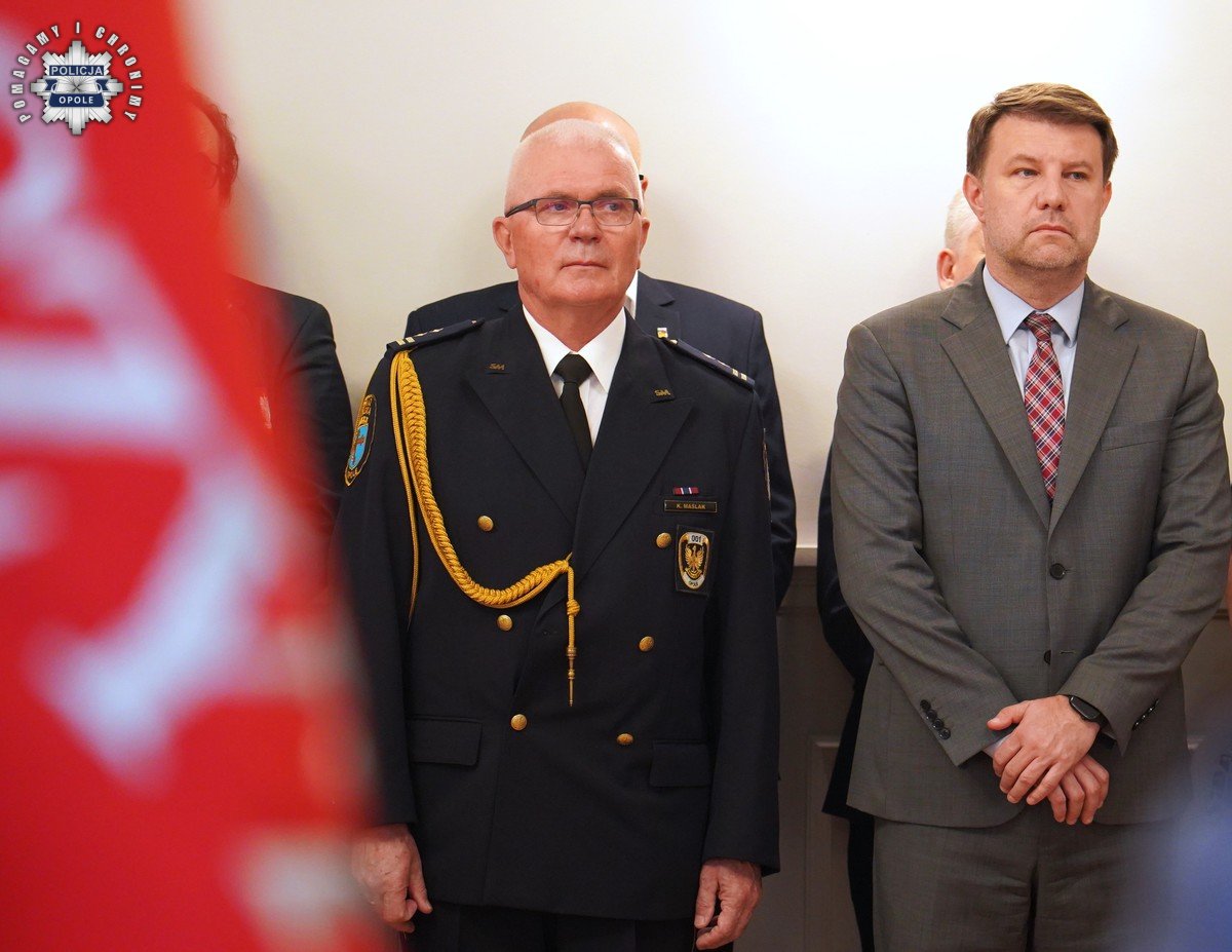 Uroczysta zbiórka była okazją do podziękowania funkcjonariuszom i pracownikom Policji za ich codzienny trud, poświęcenie i zaangażowanie na rzecz bezpieczeństwa mieszkańców powiatu opolskiego. Nie zabrakło wyrazów uznania dla przedstawicieli instytucji wymiaru sprawiedliwości, starosty, prezydenta i samorządowców, którzy każdego dnia stają ramię w ramię z opolskimi policjantami i podejmują kluczowe działania na rzecz mieszkańców powiatu.