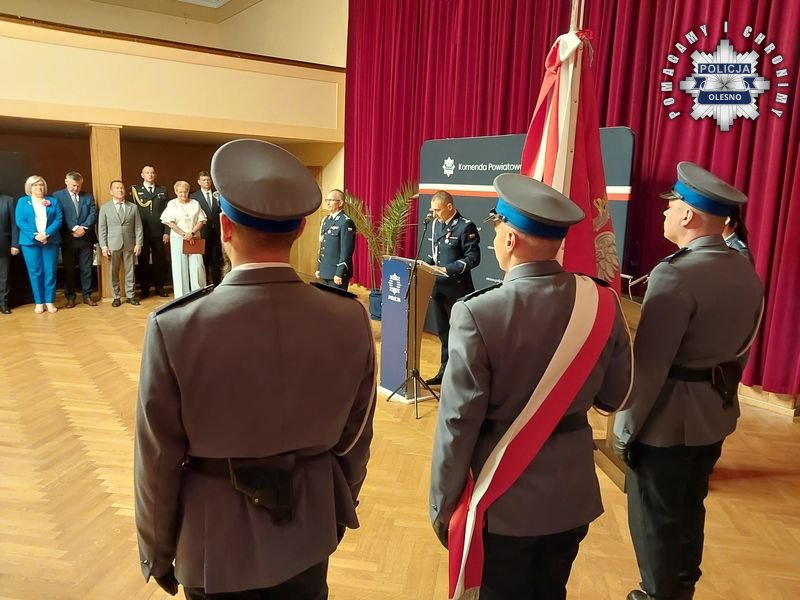 Komendant Powiatowy Policji w Oleśnie, insp. Paweł Kolczyk, podczas swojego przemówienia podziękował władzom samorządowym, służbom oraz instytucjom za bardzo dobrą współpracę, która przyczynia się do skutecznego działania na rzecz bezpieczeństwa regionu. Jednocześnie złożył gratulacje awansowanym policjantom, życząc im dalszych sukcesów zarówno w pracy zawodowej, jak i w życiu prywatnym.