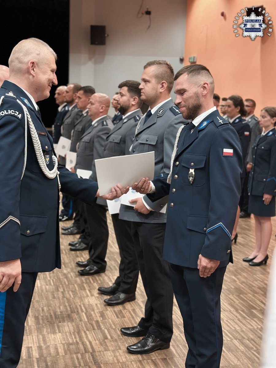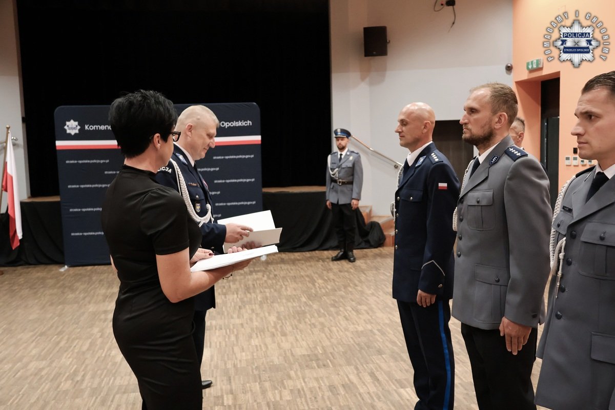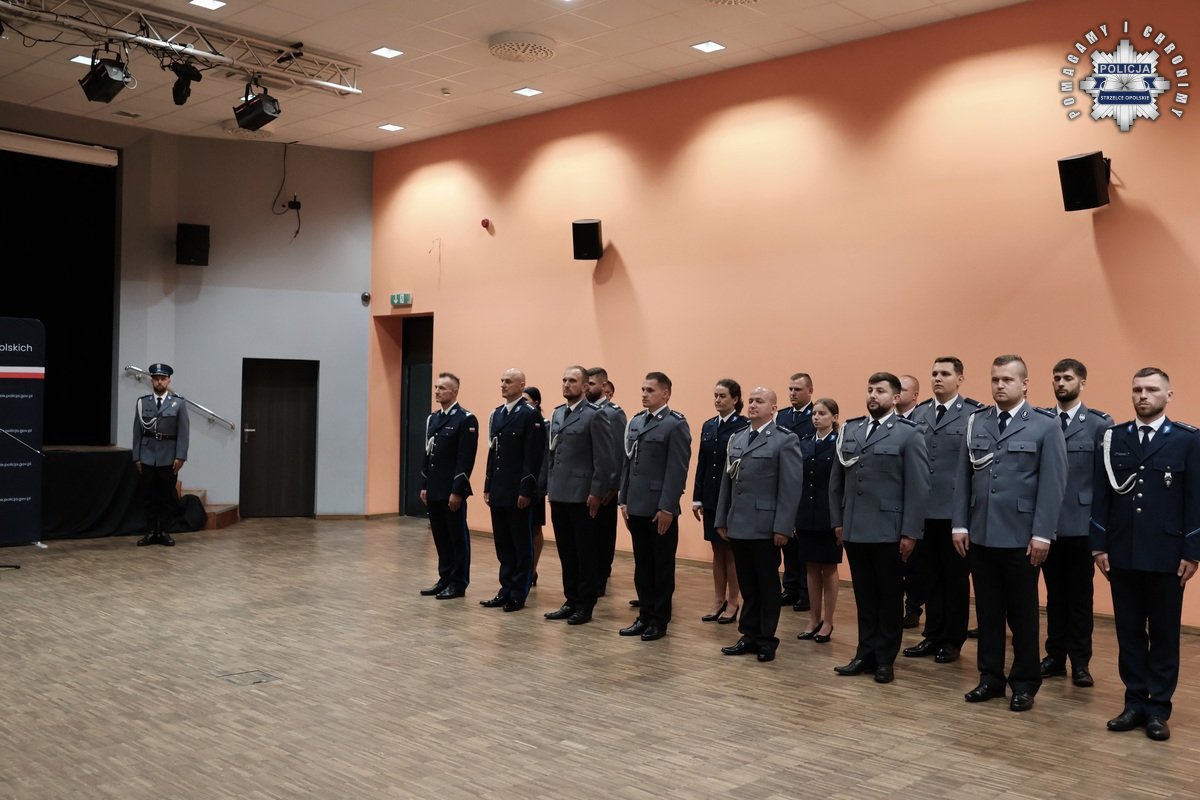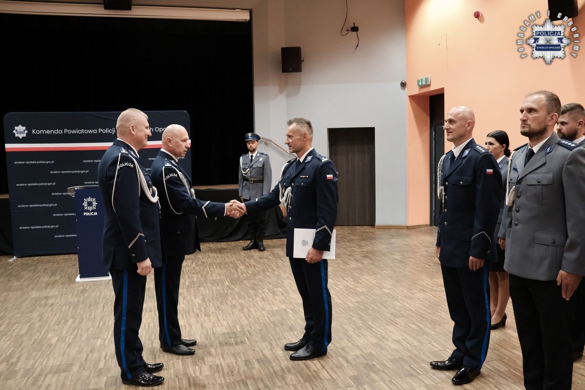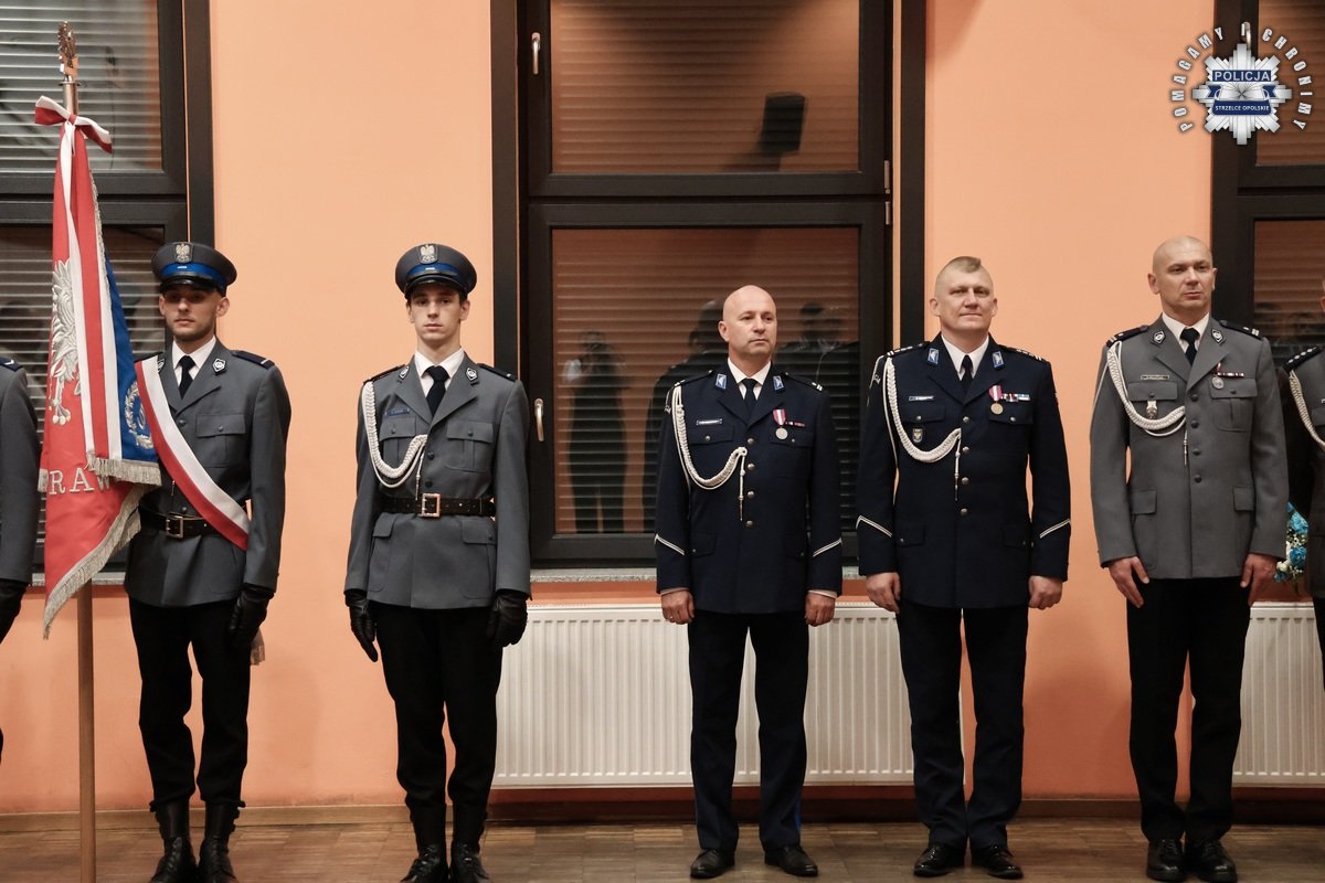 Podczas uroczystych obchodów Święta Policji głos zabrali Zastępca Komendanta Wojewódzkiego Policji oraz Starosta Powiatu Strzeleckiego, wyrażając uznanie dla codziennej służby funkcjonariuszy i pracowników Policji.