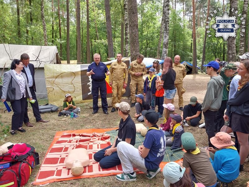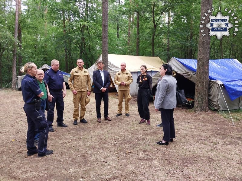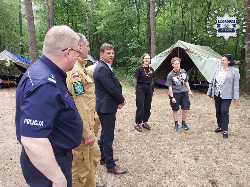 W ośrodku harcerskim w Kucobach trwa letni wypoczynek dla blisko 40 zuchów i harcerzy z województwa śląskiego. Pierwszy Zastępca Komendanta Powiatowego Policji w Oleśnie – mł. insp. Waldemar Popczyk, Komendant Powiatowy Państwowej Straży Pożarnej – bryg. Andrzej Wróbel wspólnie z Wicestarostą – Rolandem Fabiankiem oraz Opolskim Kuratorem Oświaty – Joanną Raźniewską przeprowadzili wizytację obozu podczas, której sprawdzili warunki bytowania uczestników, ustalone sposoby łączności oraz drożność dróg ewakuacyjnych.