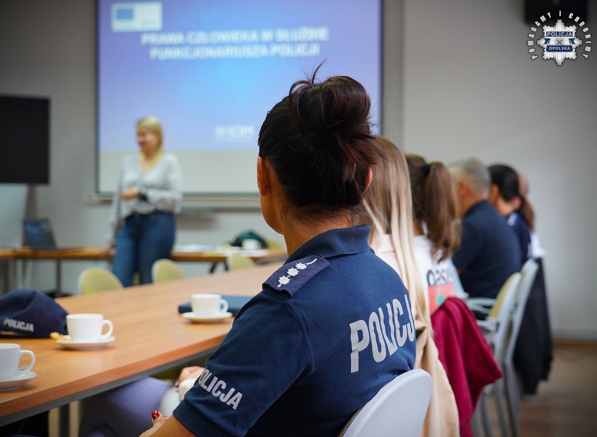 Policjanci garnizonu opolskiego uczestniczyli w szkoleniu dotyczącym praw człowieka. Spotkanie odbyło się z inicjatywy Pełnomocnika ds. Ochrony Praw Człowieka KWP w Opolu podinsp. Iwony Guterch, przy współpracy z Międzynarodową Organizacją do Spraw Migracji. Zajęcia poprowadziła adwokat Agnieszka Raczyńska – ekspertka organizacji promującej migrację z poszanowaniem praw człowieka.