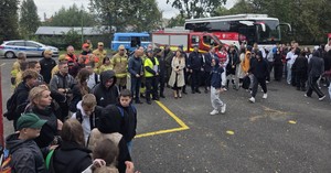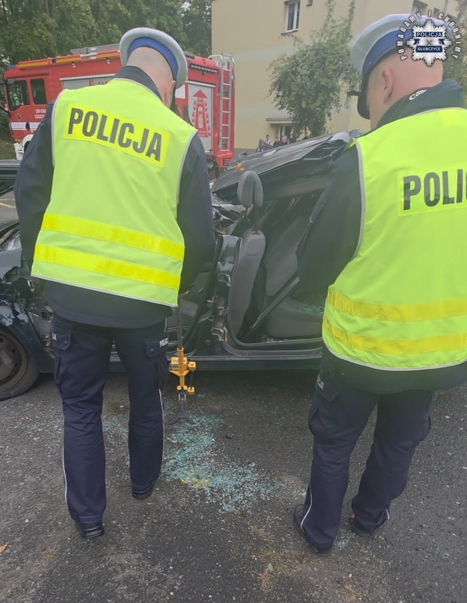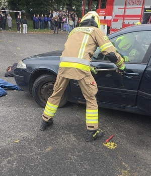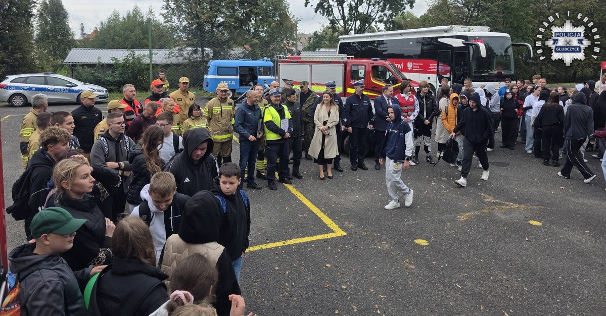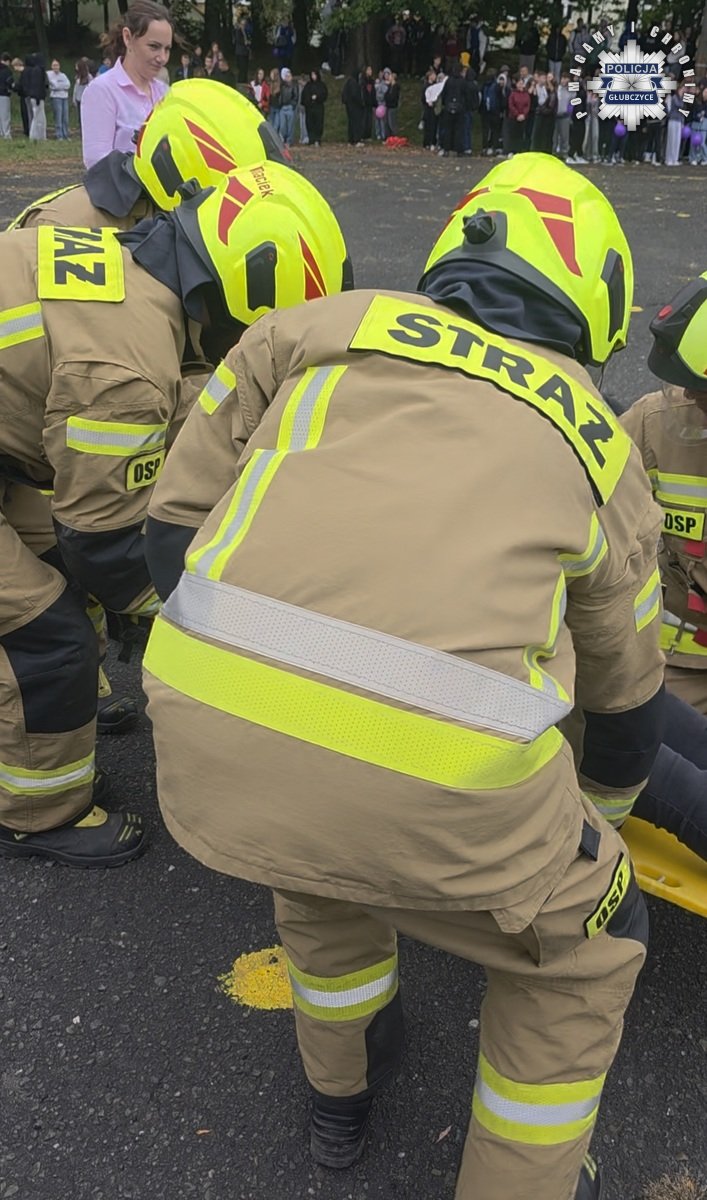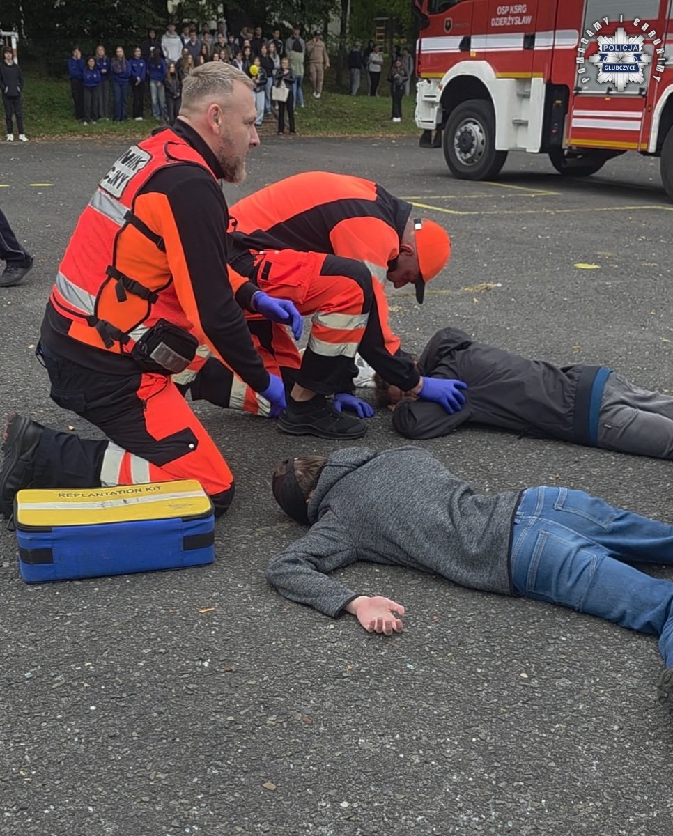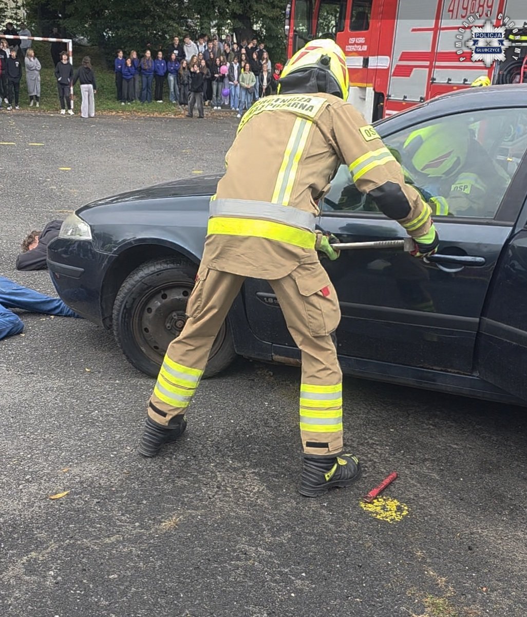 Symulacja wypadku i akcja służb - lekcja bezpieczeństwa w szkole w Głubczycach