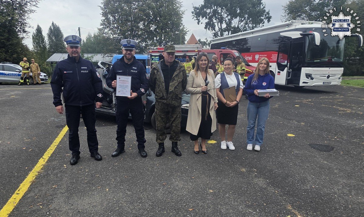 Wczoraj (24.09) policjanci Komendy Powiatowej Policji w Głubczycach wspólnie z funkcjonariuszami Wydziału Ruchu Drogowego Komendy Wojewódzkiej Policji w Opolu, włączyli się w działania organizowane w ramach "Powiatowego Dnia Bez Ofiar Śmiertelnych na Drogach". Wydarzenie to doskonale wpisało się w kampanię "Europejskiego Tygodnia Mobilności" i miało na celu promowanie bezpiecznych zachowań na drogach.