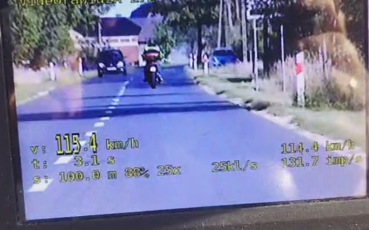 Pierwsza sytuacja to 32-letni kierujący motocyklem suzuki. Motocyklista poruszał się z prędkością 115 km/h, w miejscu gdzie obowiązuje ograniczenie do 50. Dla mężczyzny kontrola zakończyła się mandatem karnym w wysokości 2 000 złotych, nałożeniem 14 punktów karnych i zatrzymaniem prawa jazdy na 3 miesiące.