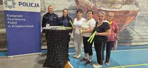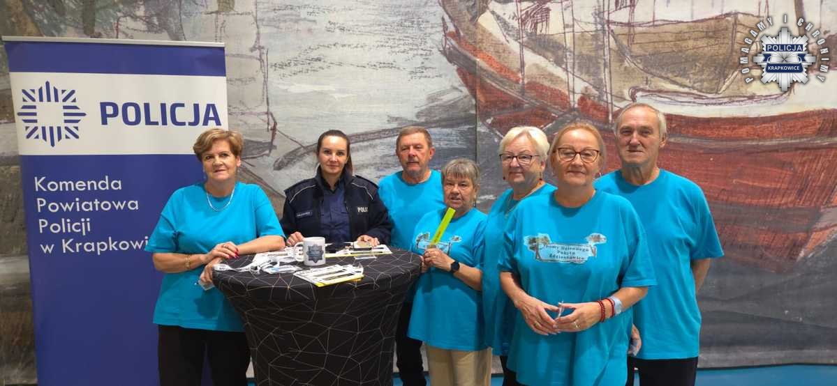 Takie spotkanie było doskonałą okazja, aby porozmawiać o bezpieczeństwie, dlatego nie zabrakło tam również krapkowickich policjantów. Mundurowi rozmawiali z uczestnikami o tym, jak dbać o swoje bezpieczeństwo na co dzień – zarówno w domu, jak i na drodze. Funcjonariusze przypomnieli seniorom co zrobić i jakich sytuacji unikać, aby nie dać się oszukać "na wnuczka" czy "na policjanta" lub podczas zakupów w internecie. Policjanci rozdali też odblaskowe opaski, które wpłyna na bezpieczeństwo seniorów poruszających sie po drogach naszego powiatu.