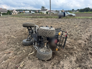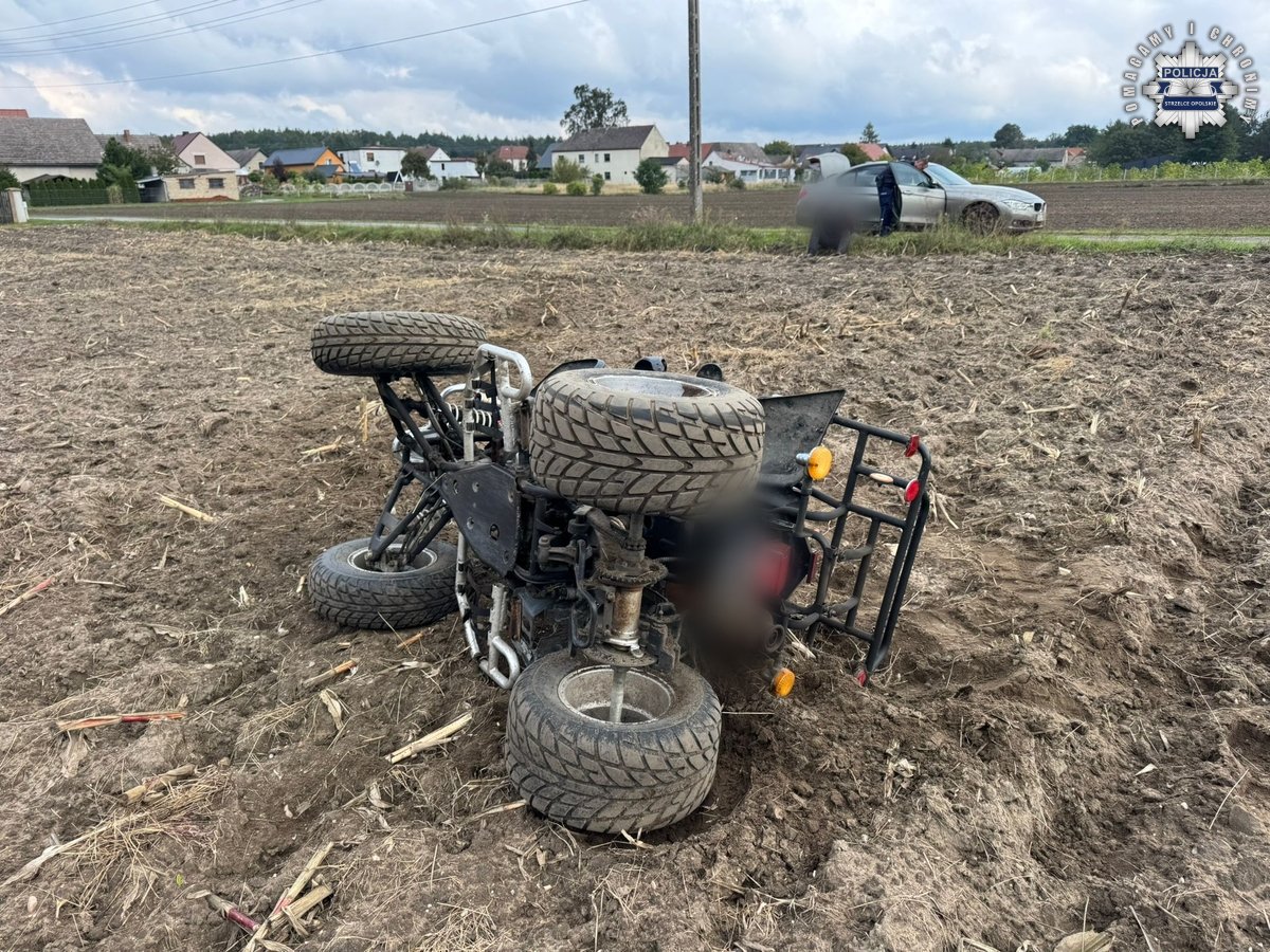 W środę w miejscowości Barut policjanci z grupy SPEED zauważyli czterokołowiec lekki poruszający się niezgodnie z przepisami – kierujący nie korzystał z kasku ochronnego, a pojazd nie miał włączonych wymaganych świateł. Mundurowi wydali sygnał do zatrzymania, używając sygnałów świetlnych i dźwiękowych. Kierowca zignorował polecenia, gwałtownie przyspieszył i wjechał w drogę polną. W trakcie ucieczki wjechał na pole uprawne i w wyniku nadmiernej prędkości stracił panowanie nad pojazdem, który się wywrócił.