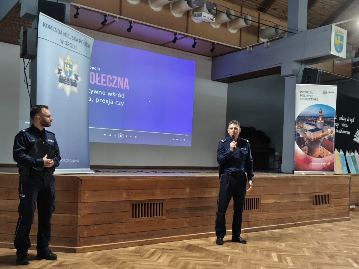 Policjanci z Komendy Miejskiej Policji w Opolu wspólnie z Urzędem Miasta Opola zorganizowali debatę społeczną poświęconą zagadnieniu używania środków psychoaktywnych wśród młodzieży. Zaproszeni prelegenci poruszyli problematykę odpowiedzialności prawnej wśród osób nieletnich, aspekt zdrowotny zażywania narkotyków oraz problematykę presji otoczenia. Spotkanie odbyło się w Publicznym Liceum Ogólnokształcącym nr VI w Opolu.