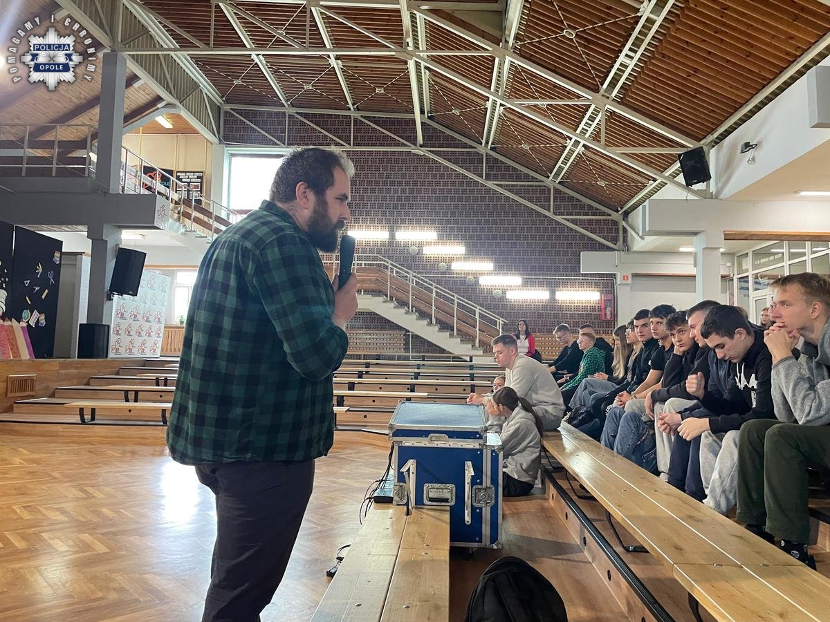 Głos jako pierwszy zabrał Naczelnik Wydziału Prewencji Komisariatu Policji II w Opolu, kom. Krzysztof Adamiec, który omówił odpowiedzialność prawną wśród osób nieletnich. Przedstawił również problematykę demoralizacji wśród dzieci i młodzieży oraz działania, które podejmujemy, aby zniwelować to zagrożenie.