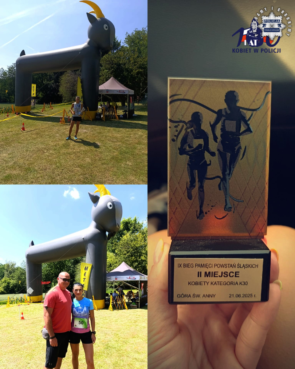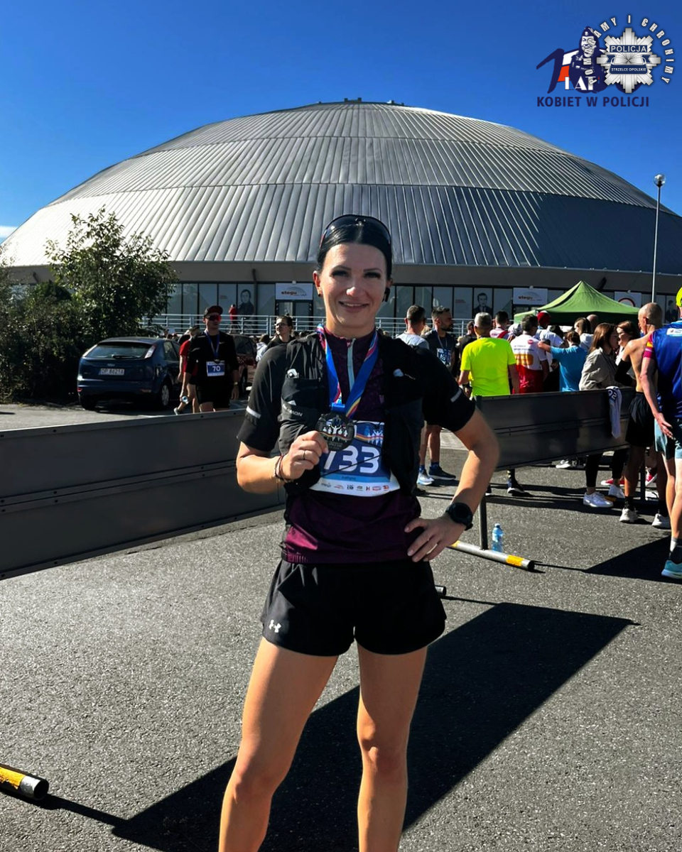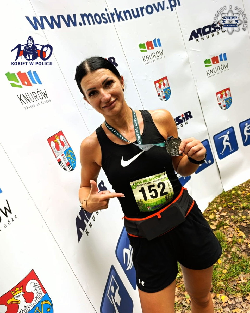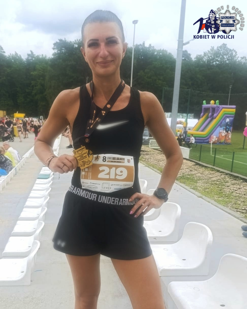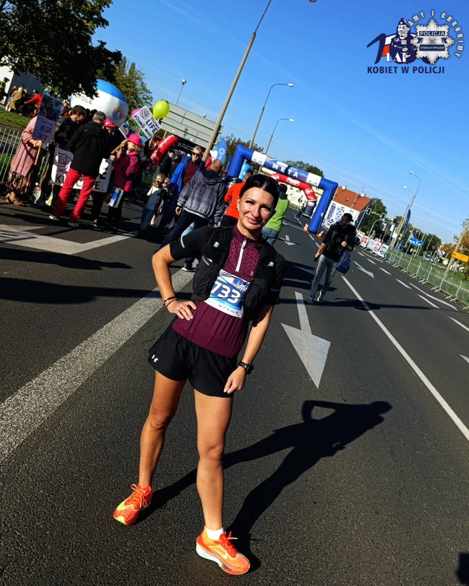 Sierż. szt. Justyna Szymczak ze strzeleckiej komendy Policji biega od zawsze – już w czasach szkolnych startowała w zawodach na krótkich dystansach. Choć później przerwy spowodowane macierzyństwem na chwilę odsunęły sport na dalszy plan, nigdy nie zrezygnowała z pasji. W 2020 roku rozpoczęła udział w biegach charytatywnych i sportowych wydarzeniach na terenie Opolszczyzny i Śląska, zdobywając liczne miejsca na podium. Od tego czasu pokonała już ponad 1000 kilometrów, a w tegorocznym półmaratonie opolskim uzyskała znakomity wynik – 1 godzina 55 minut.