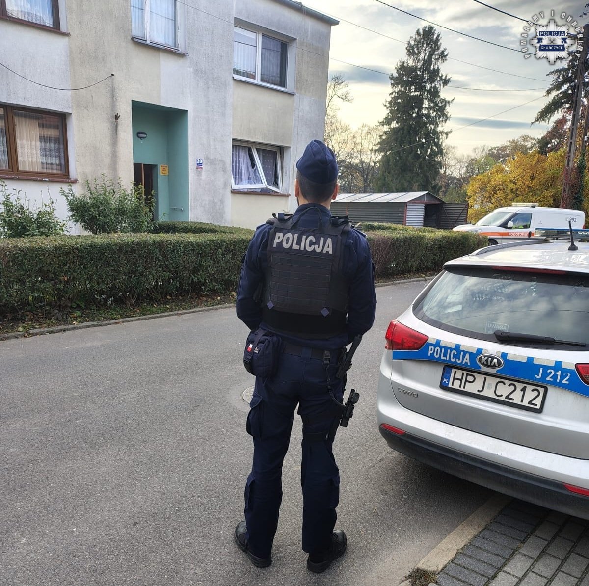 21 października 2025 roku około godz. 7.30 dyżurny Komendy Powiatowej Policji w Głubczycach otrzymał informację, że w budynku wielorodzinnym przy ulicy Mickiewicza okno jednego z mieszkań, nienaturalnie wisi poza obrys elewacji, tak jakby doszło do wybuchu. Dyżurny natychmiast pod wskazany adres wysłał patrol policji, który potwierdził zgłoszenie, że w mieszkaniu doszło do wybuchu nieznanego przedmiotu. W mieszkaniu znajdowały się 3 osoby: dwóch mężczyzn w wieku 62 i 65 lat oraz 45-letnia kobieta. Wszyscy byli pod wpływem alkoholu. Najstarszy z mężczyzn miał prawie pół promila, a kobieta i właściciel mieszkania ponad 2,5 promila alkoholu w organizmie. W wyniku zdarzenia dwóch mężczyzn zostało rannych. Jeden z nich z urazem nogi a drugi z ogólnymi obrażeniami ciała trafili do szpitala. Ich życiu nie zagraża niebezpieczeństwo. Na miejsce zostali zadysponowani policjanci z psami wyszkolonymi do wyszukiwania zapachu materiałów wybuchowych, a także saperzy z Samodzielnego Pododdziału Kontrterrorystycznego Policji w Katowicach. Zarządzono ewakuacje mieszkańców budynku, w którym doszło do wybuchu i okolicznych domów. Na czas działania Policji ewakuowano 36 osób.