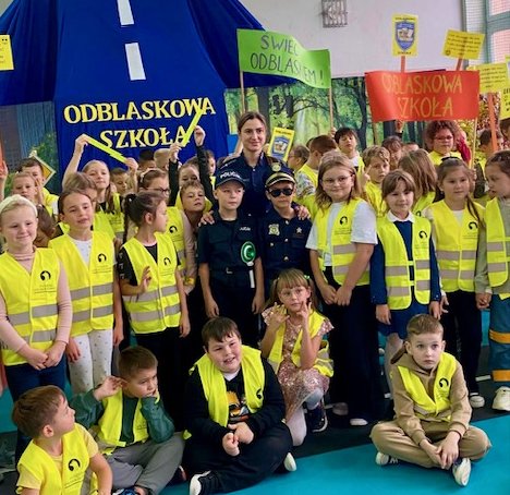 Policjanci z Komendy Powiatowej Policji w Nysie wzięli udział w wyjątkowym wydarzeniu zorganizowanym w ramach ogólnopolskiego konkursu „Odblaskowa Szkoła 2025”. Organizatorem spotkania była Publiczna Szkoła Podstawowa im. Bohaterów Walki z Faszyzmem w Łambinowicach. Funkcjonariusze zostali zaproszeni na przygotowane przez uczniów przedstawienie promujące bezpieczeństwo na drodze oraz ideę noszenia elementów odblaskowych.