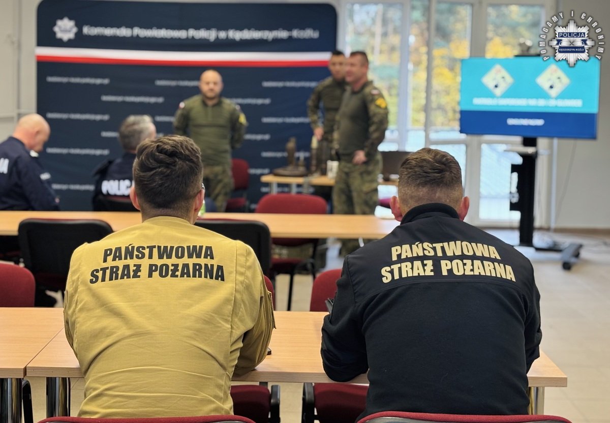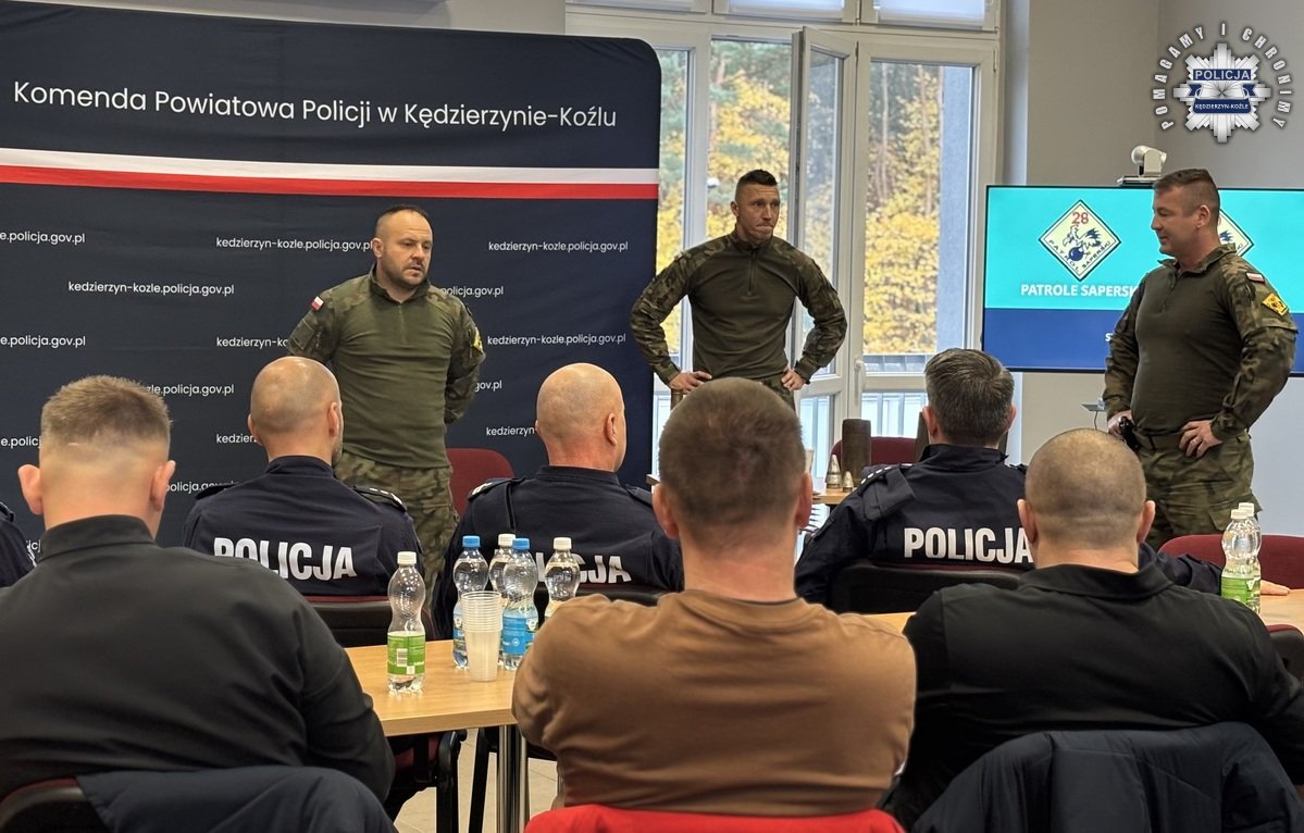 W Komendzie Powiatowej Policji w Kędzierzynie-Koźlu odbyło się szkolenie poświęcone zasadom postępowania podczas zgłoszeń dotyczących zagrożeń związanych z materiałami wybuchowymi oraz przedmiotami niebezpiecznymi. W zajęciach uczestniczyli policjanci z Kędzierzyna-Koźla, Strzelec Opolskich i Głubczyc oraz przedstawiciele Państwowej Straży Pożarnej.