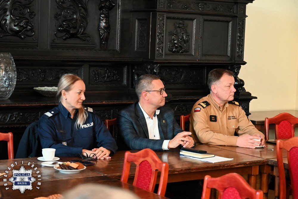 W rozmowach wzięli udział: Komendant Wojewódzki Policji w Opolu nadinsp. Magdalena Nguyen-Fudala, Starosta Powiatu Brzeskiego Jacek Monkiewicz, Komendant Powiatowy Policji w Brzegu insp. Michał Karoński, Burmistrz Brzegu Violetta Jaskólska-Palus, Burmistrz Lewina Brzeskiego Artur Kotara, Burmistrz Grodkowa Miłosz Krok, Wójt Gminy Lubsza Michał Marek, Wójt Gminy Olszanka Tymoteusz Drebschok, Zastępca Wójta Gminy Skarbimierz Bogusław Gąsiorowski, Kanclerz Wyższej Szkoły Humanistyczno-Ekonomicznej w Brzegu Stanisław Widocki, Prezes Banku Spółdzielczego Grodków-Łosiów Zdzisław Wojdak, Dyrektor Muzeum Piastów Śląskich w Brzegu Dariusz Byczkowski oraz Członek Rady Muzeum Piastów Śląskich w Brzegu dr Romuald Nowak. W spotkaniu wzięli również udział przedstawiciele straży pożarnej m.in. Opolski Komendant Wojewódzki Państwowej Straży Pożarnej nadbryg. Paweł Kielar.
