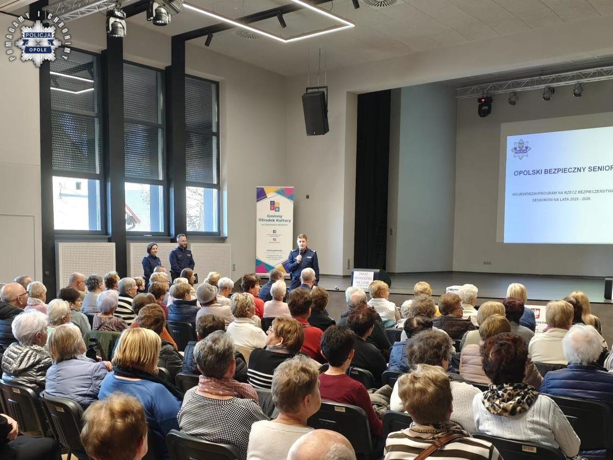 Policjanci z Komendy Miejskiej Policji w Opolu oraz Komisariatu Policji w Dobrzeniu Wielkim zorganizowali debatę społeczną poświęconą zagadnieniu bezpieczeństwa seniorów. Zaproszeni prelegenci poruszyli problematykę oszustów działających metodami „na policjanta” i „na wnuczka”, bezpieczeństwu na terenie gminy Dobrzeń Wielki oraz zagrożeń, jakie mogą czyhać na użytkowników Internetu. Spotkanie odbyło się w Gminnym Ośrodku Kultury w Dobrzeniu Wielkim i zgromadziło wielu seniorów – mieszkańców okolicznych gmin.