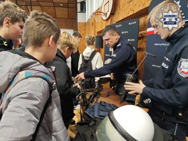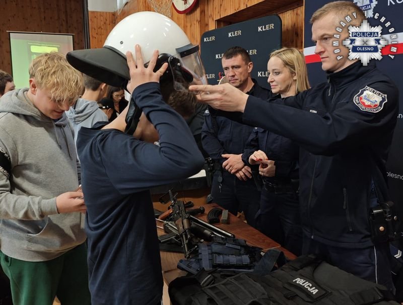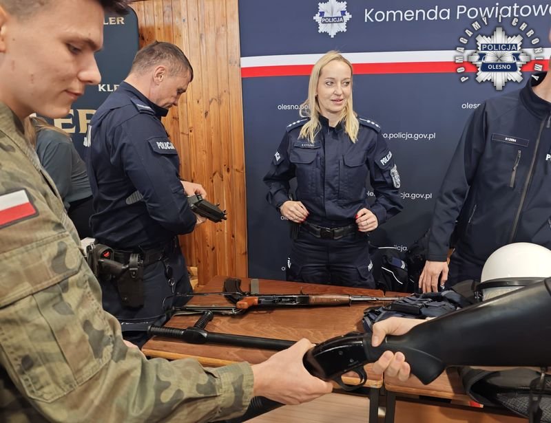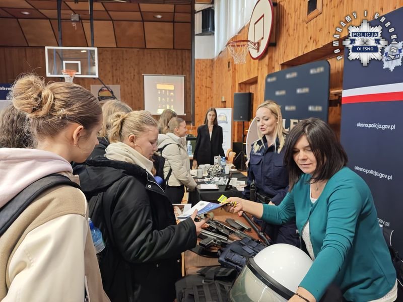 Policjanci z Olesna i Dobrodzienia promowali służbę podczas "Dobrodzieńskich Dni Kariery", które odbyły się w Zespole Szkół w Dobrodzieniu — placówce kształcącej młodzież również w klasach o profilu mundurowym. Funkcjonariusze pojawili się na wydarzeniu nie tylko jako przedstawiciele służby, ale także jako praktyczni doradcy dla uczniów rozważających przyszłość związaną z mundurem. Ich obecność miała na celu pokazanie realiów pracy policjanta i zachęcenie młodych osób do spojrzenia na policję jako jedną z atrakcyjnych ścieżek zawodowych.