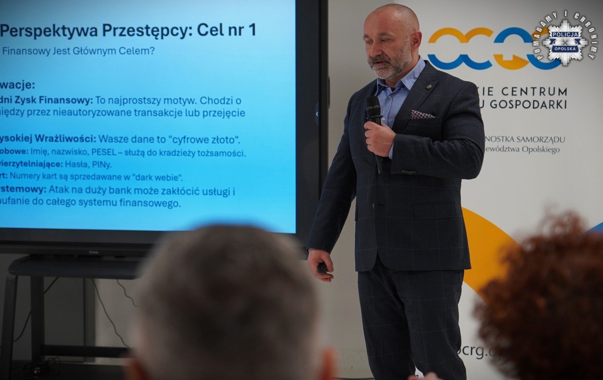 Jednym z kluczowych elementów programu było wystąpienie ekspertów z Komendy Wojewódzkiej Policji w Opolu: mł. insp. Jarosława Grajcara - Naczelnika Wydziału do walki z Przestępczością Gospodarczą oraz podinsp. Janusza Ustrzyckiego. Obecność dwóch doświadczonych funkcjonariuszy w gronie prelegentów podkreśliła strategiczne znaczenie wymiany informacji między służbami mundurowymi, a sektorem biznesu. Policjanci, jako praktycy, podzielili się z uczestnikami wiedzą na temat metod działania oszustów internetowych czerpiąc z doświadczeń Komendy Wojewódzkiej Policji w Opolu.