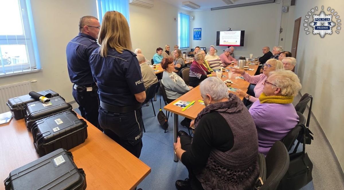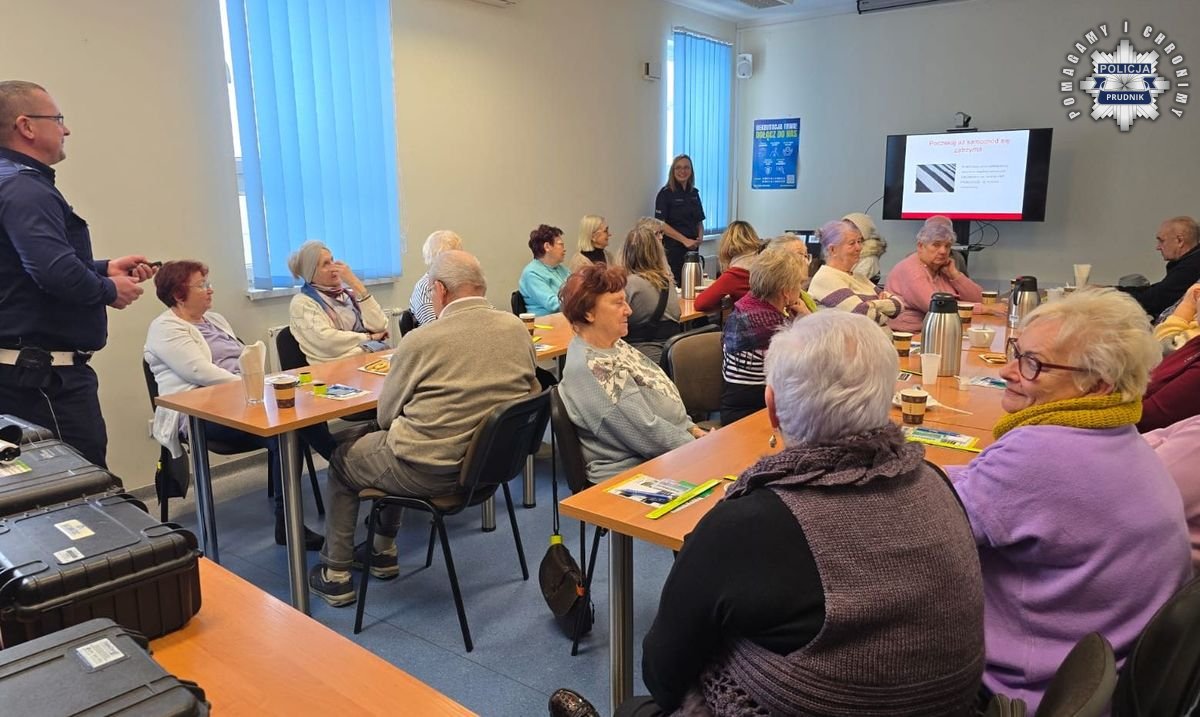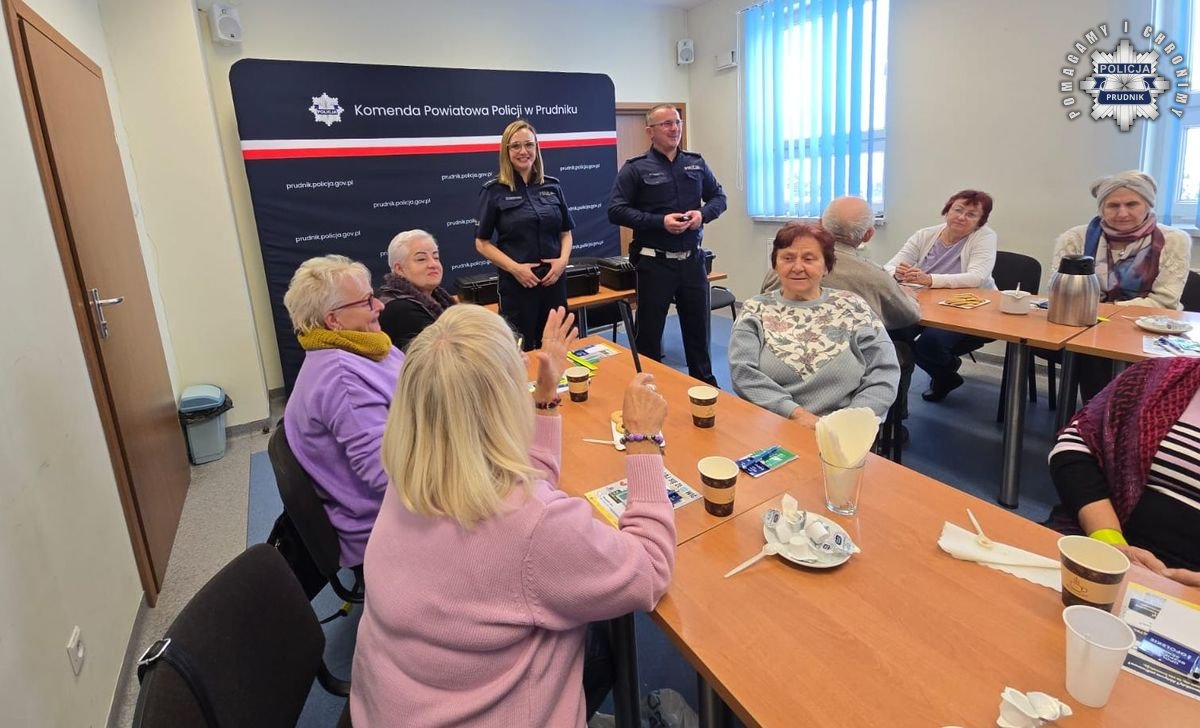 W Komendzie Powiatowej Policji w Prudniku odbyła się debata poświęcona bezpieczeństwu starszych mieszkańców powiatu. Spotkanie poprowadzili asp. Monika Rozembajgier oraz st. asp. Witold Różycki. Uczestnikami byli seniorzy z Klubu Seniora Plus, którzy chętnie włączyli się w rozmowę. Podczas wydarzenia poruszono głównie tematykę związaną z ruchem drogowym. Prudniccy funkcjonariusze nie zapomnieli jednak o przypomnieniu seniorom metod działania oszustów „na wnuczka" i „na policjanta", apelując o ostrożność i rozwagę w kontakcie z obcymi osobami.
