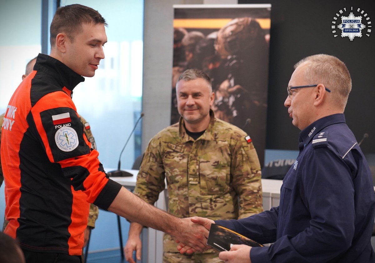 Podczas zakończenia wydarzenia podziękowania uczestnikom złożył również Dyrektor Opolskiego Centrum Ratownictwa Medycznego Pan Jarosław Kostyła. Pan Dyrektor był pod wrażeniem przeprowadzonego szkolenia, zapowiadając jednocześnie, że ćwiczenia medyków z policjantami SPKP Opole nie są ostatnią wspólnie zorganizowaną inicjatywą.