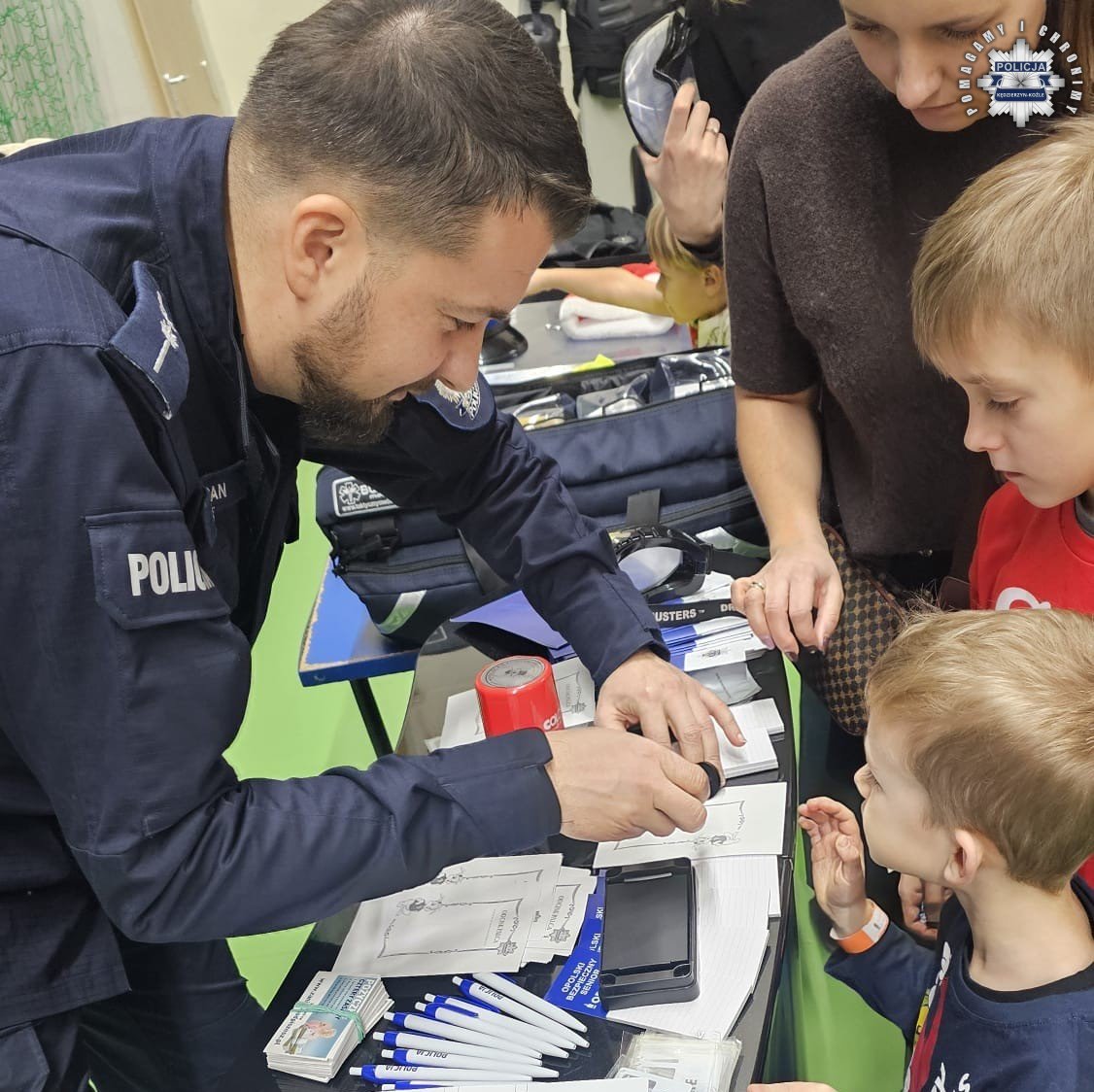 Dzieci z ogromnym zainteresowaniem słuchały o specyfice pracy policjanta i zasadach bezpiecznego zachowania się na drodze czy w kontaktach z obcymi. Największą ciekawość wzbudziła prezentacja policyjnego sprzętu-od kajdanek po kamizelki taktyczne, a nawet sprzęt technika kryminalistyki. Najmłodsi mogli zobaczyć, a nawet przymierzyć policyjny sprzęt używany w codziennej służbie przez funkcjonariuszy i poczuć się jak prawdziwi stróże prawa.