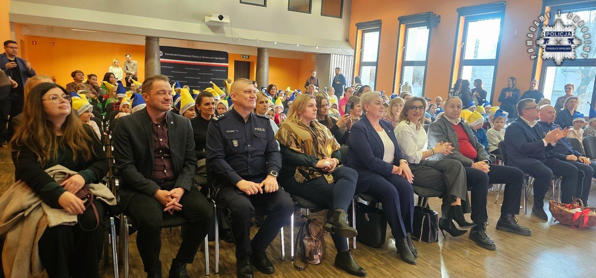 Uroczystość zgromadziła również wielu gości, którzy wspierają rozwój edukacji i bezpieczeństwa najmłodszych w regionie. W wydarzeniu uczestniczył Zastępca Komendanta Wojewódzkiego Policji w Opolu – insp. Remigiusz Sawicki, Starosta Powiatu Strzeleckiego – Pan Waldemar Gaida, a także Przewodnicząca Komisji Edukacji Dialogu Obywatelskiego i Wielokulturowości Sejmiku Województwa Opolskiego – Pani Edyta Gola. Obecni byli również przedstawiciele władz gminnych, dyrektorzy przedszkoli oraz liczne grono opiekunek przedszkolnych.