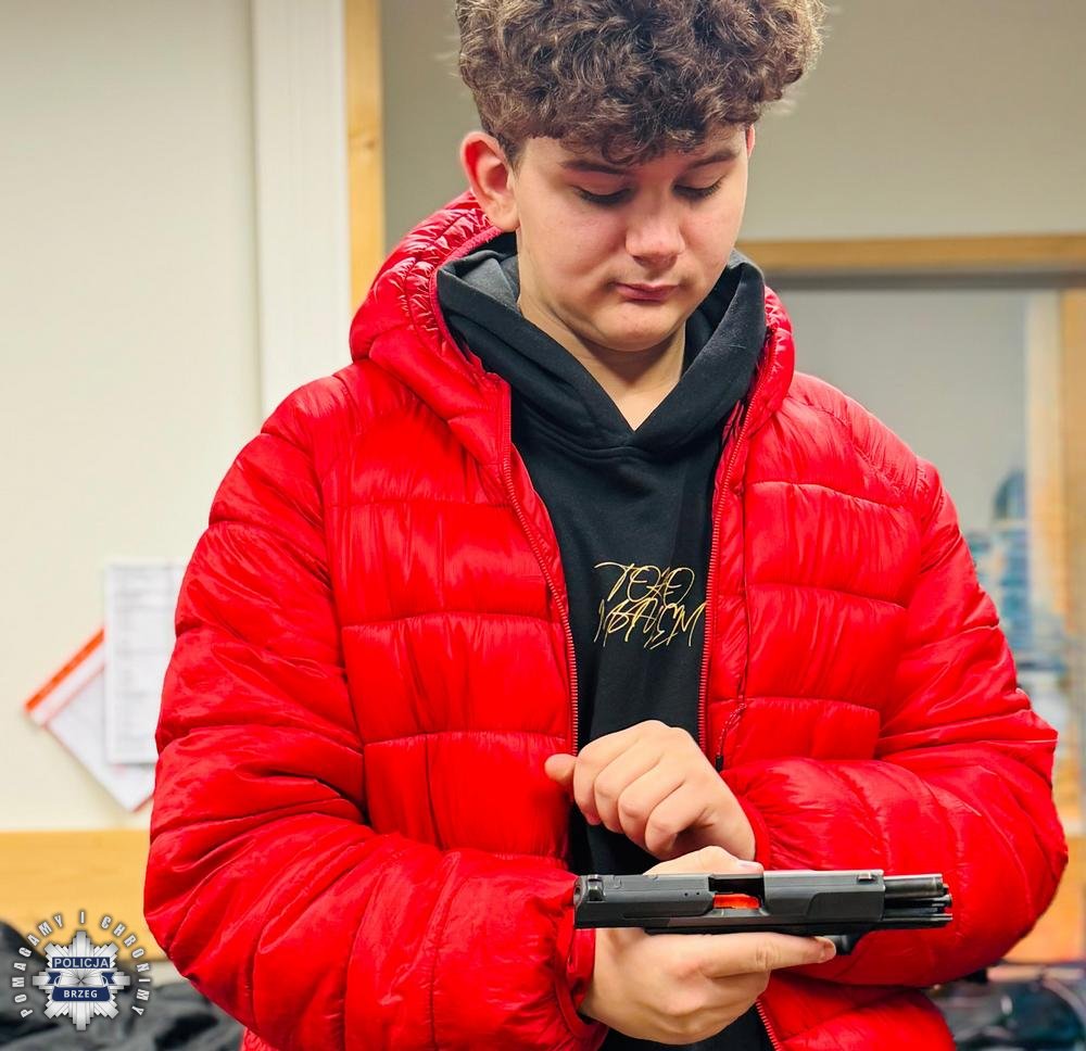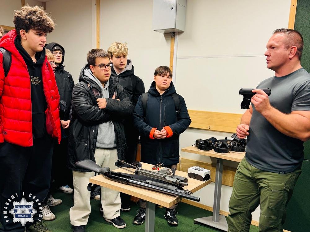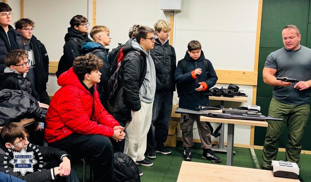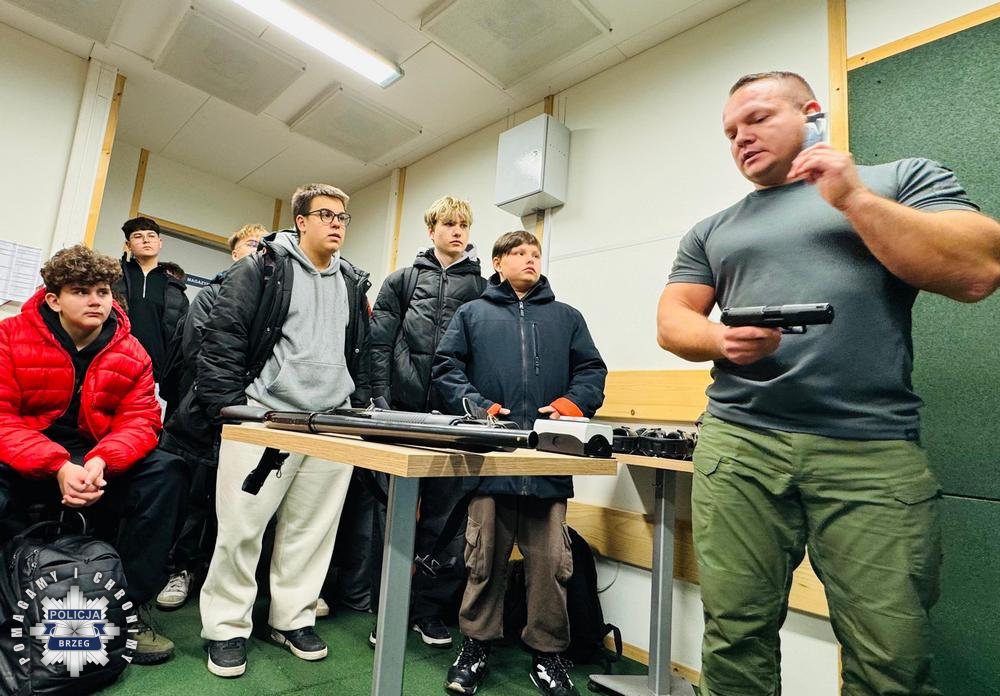 Kolejne w tym roku szkolnym spotkanie z młodzieżą z Zespołu Szkół Zawodowych nr 1 w Brzegu za nami. Zasady użycia broni służbowej czy środków przymusu bezpośredniego budzą zainteresowanie wśród młodzieży. Dlatego była to dobra okazja porozmawiać i zaprezentować młodzieży typy broni palnej, które znajdują się na wyposażeniu Policji. Spotkanie pokazało, że służba w Policji jest interesująca dla młodzieży, stanowi również realną i ciekawą ścieżką zawodową. Policyjny instruktor wyszkolenia strzeleckiego asp. Bartosz Jeżowski omówił budowę broni, jej mechanizmy i sposób działania. Policjant opowiadał m.in. o broni krótkiej typu Walther P-99 i broni gładkolufowej typu Mossberg.