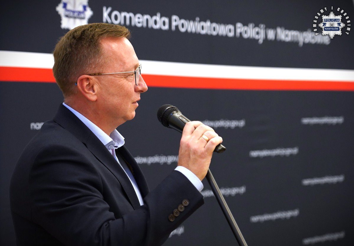 Spotkanie rozpoczęło się od oficjalnego powitania uczestników oraz wystąpienia Komendanta Powiatowego Policji w Namysłowie insp. Przemysława Stankiewicza, który podkreślił znaczenie inwestycji dla lokalnej społeczności.