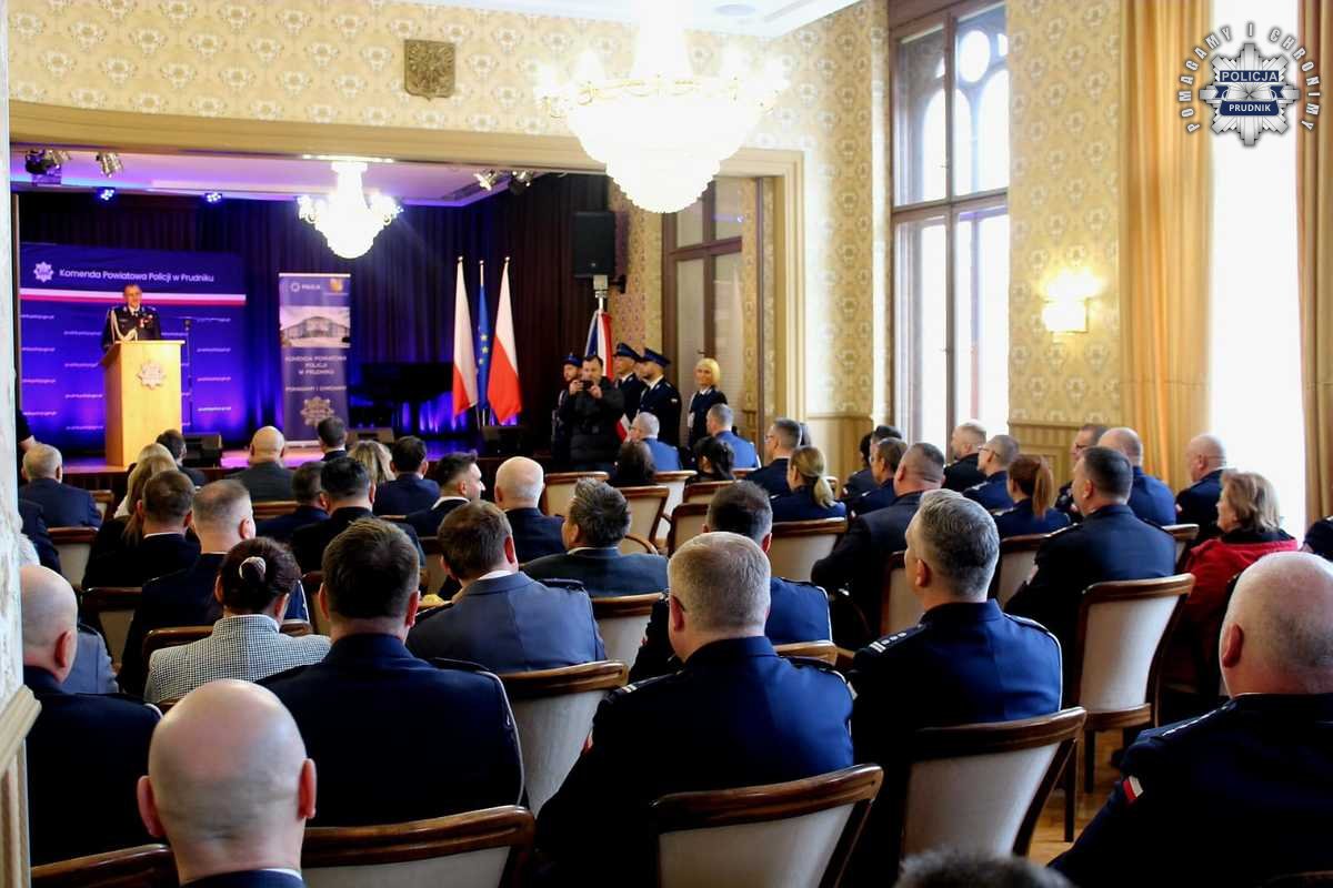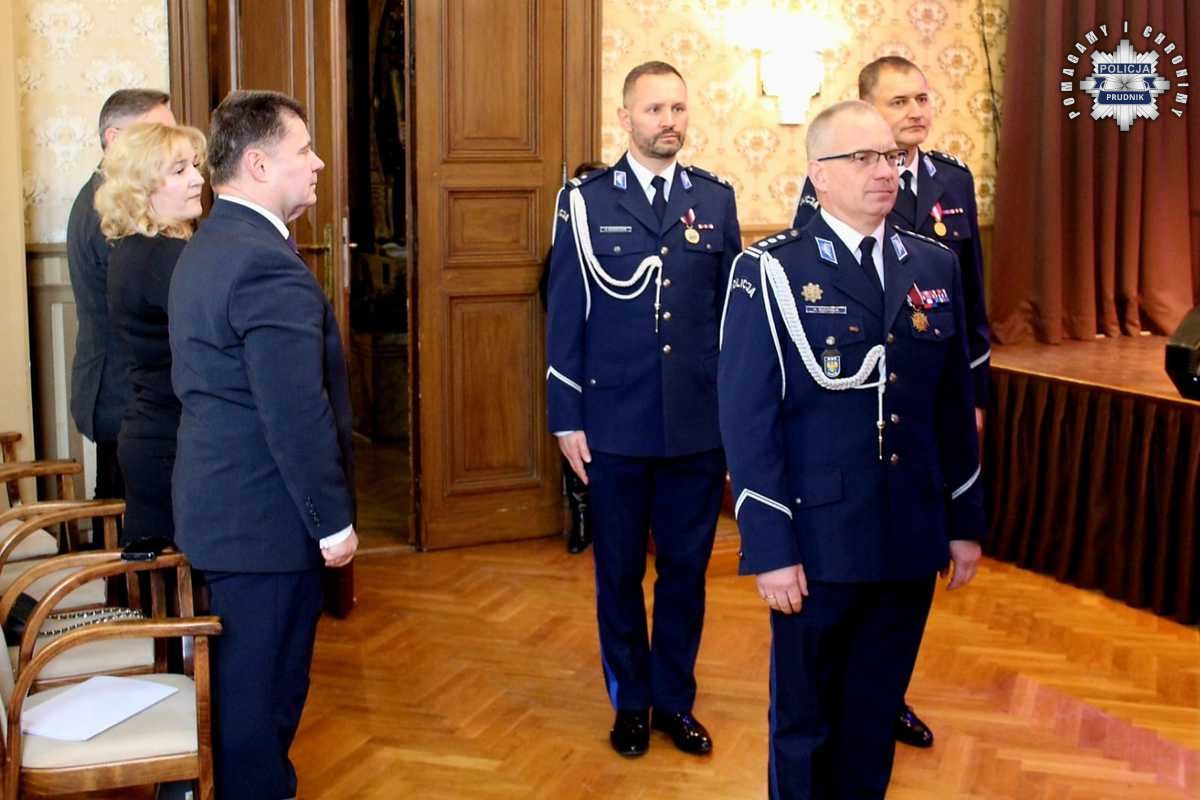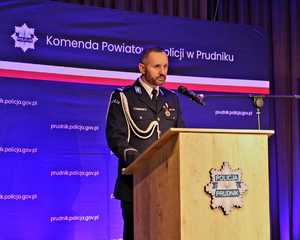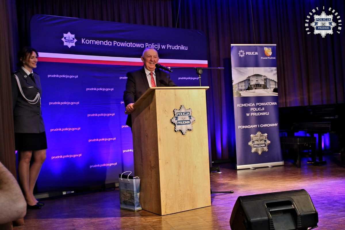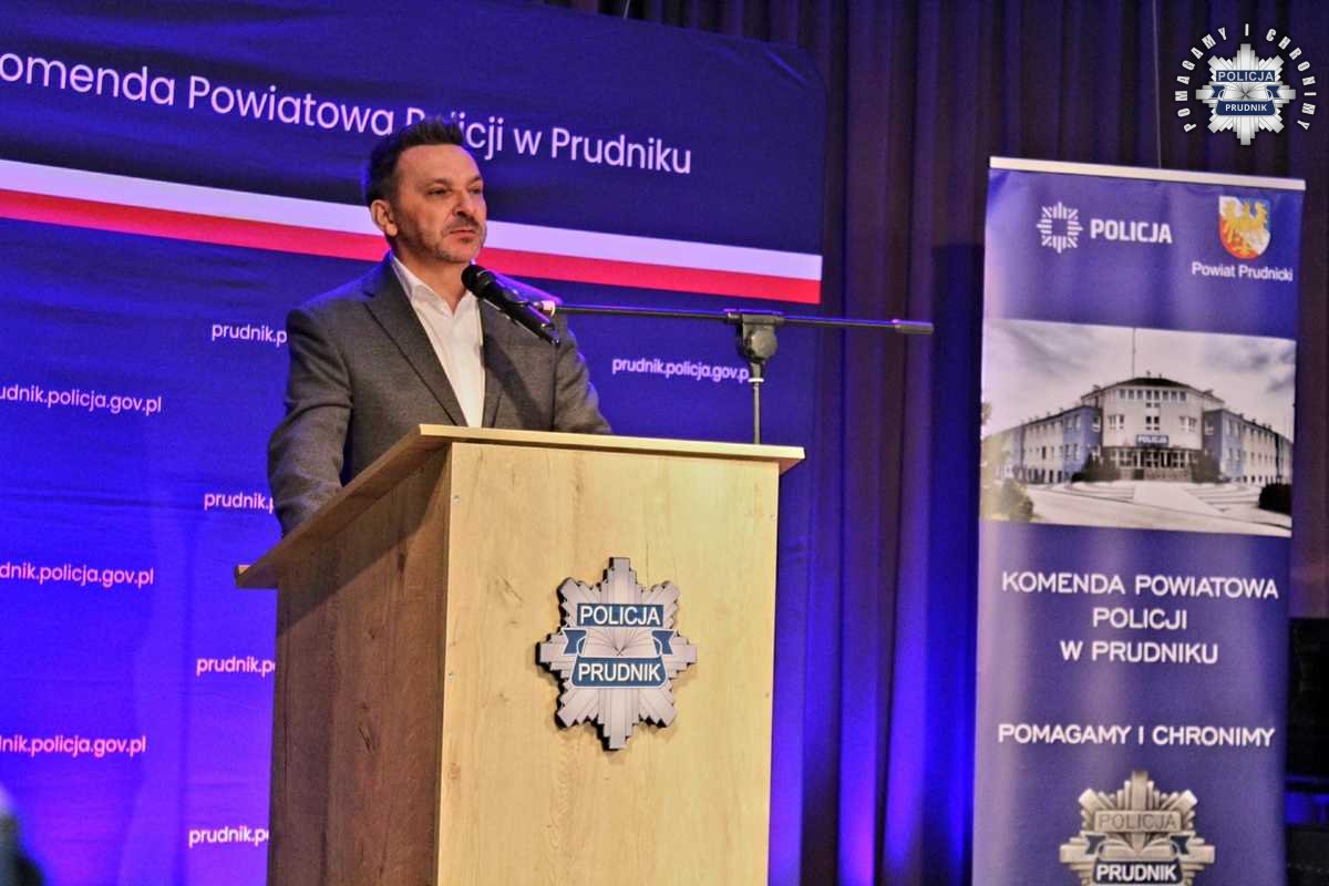 W imieniu Komendanta Wojewódzkiego Policji w Opolu insp. Magdaleny Nguyen-Fudali, insp. Krzysztof Buchała podziękował Komendantowi prudnickiej jednostki za dotychczasową służbę oraz zaangażowanie .