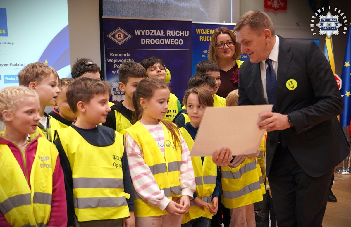 W środę 28 stycznia 2026 roku Sala Orła Białego Urzędu Marszałkowskiego Województwa Opolskiego w Opolu wypełniła się po brzegi najmłodszymi uczestnikami ruchu drogowego. Wszystko to za sprawą wojewódzkiego finału ogólnopolskiego konkursu pn. ,,Odblaskowa Szkoła 2025” na Opolszczyźnie. Była to pierwsza edycja projektu, do której zgłosiły się 43 szkoły podstawowe z naszego regionu. Głównym celem konkursu było zwiększenie bezpieczeństwa dzieci w ruchu drogowym poprzez edukację i popularyzację stosowania elementów odblaskowych.