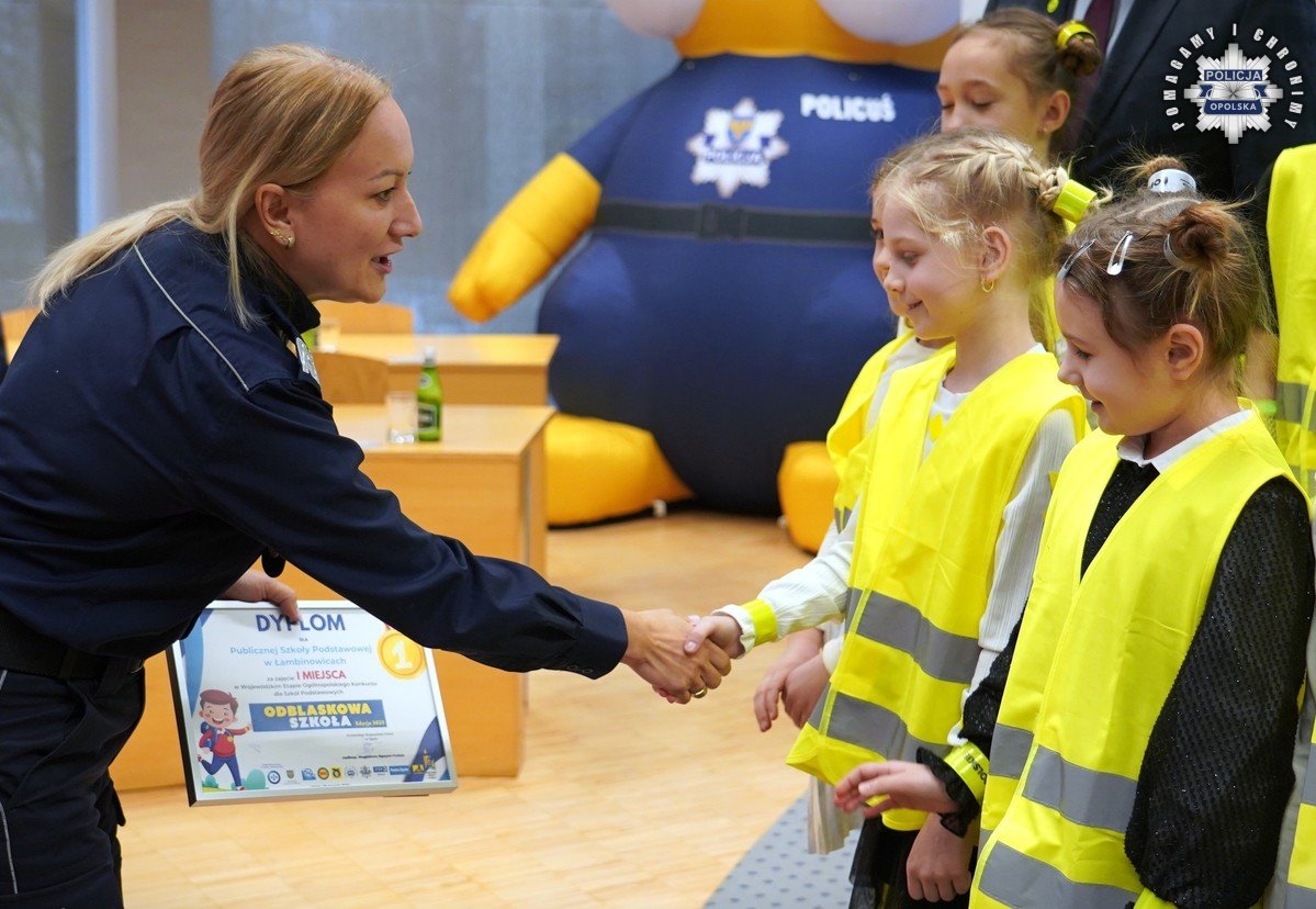 Wojewódzki finał konkursu "Odblaskowa Szkoła 2025" z udziałem opolskich policjantów