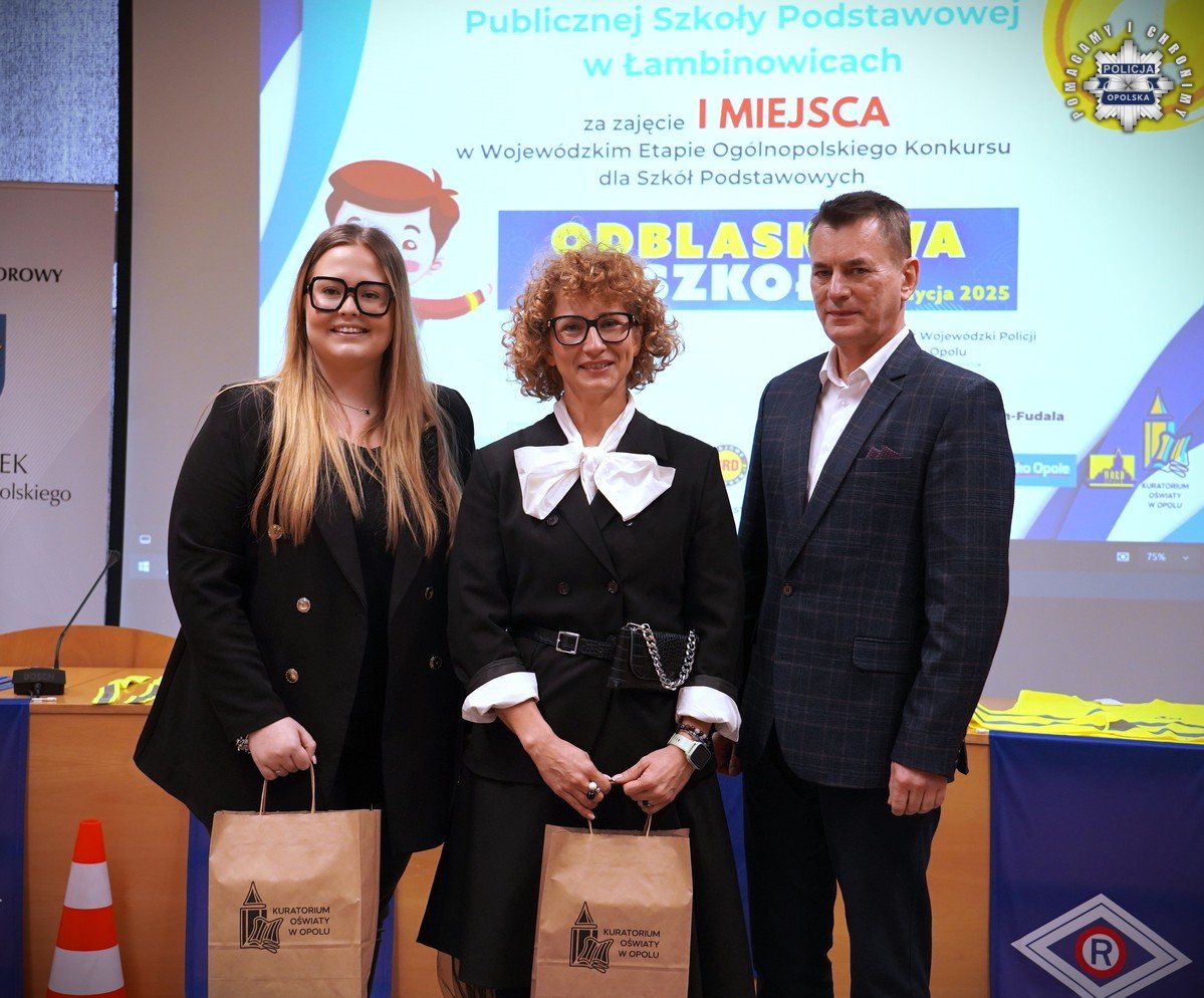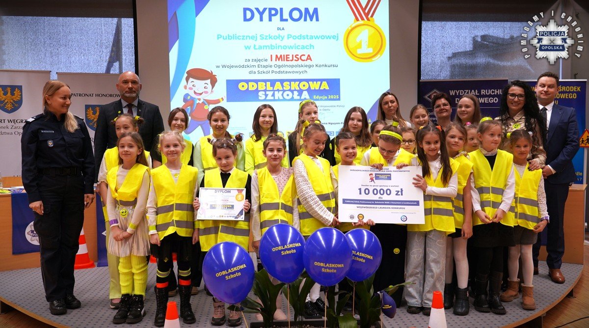 Wojewódzki finał ogólnokrajowego konkursu "Odblaskowa szkoła 2025” już za nami, ale najważniejsza lekcja zostanie z uczestnikami na zawsze. To wydarzenie pokazało, że profilaktyka bezpieczeństwa na drodze ma największą moc, gdy zaczyna się już od najmłodszych lat. Dzięki wspólnej zabawie i nauce uczniowie województwa opolskiego zrozumieli, że jeden mały element odblaskowy może uratować życie, a nawyki wypracowane dzisiaj w szkole, zaowocują odpowiedzialnością i większym bezpieczeństwem w ich dorosłym życiu. Laureatem konkursu została Publiczna Szkoła Podstawowa w Łambinowicach.