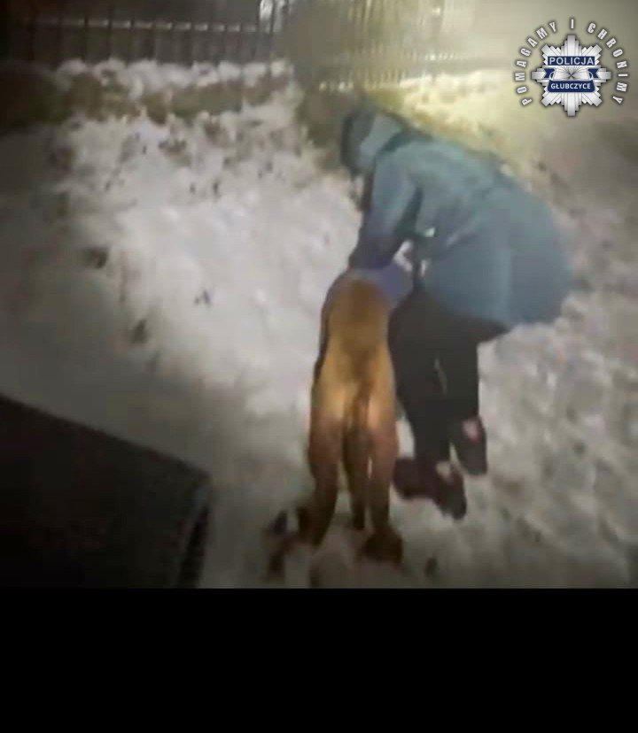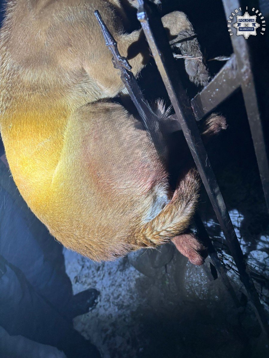 W nocy z 9 na 10 lutego br., tuż po godzinie 1:00, dyżurny Komendy Powiatowej Policji w Głubczycach otrzymał zgłoszenie od mieszkanki regionu, która poinformowała, że na posesji znajduje się ranny pies. Na miejsce natychmiast skierowani zostali funkcjonariusze z Głubczyc. Po dotarciu pod wskazany adres policjanci zobaczyli zaklinowane w ogrodzeniu, wyraźnie wyczerpane i cierpiące zwierzę. Funkcjonariusze niezwłocznie przystąpili do czynności, mających na celu uratowanie psa.
