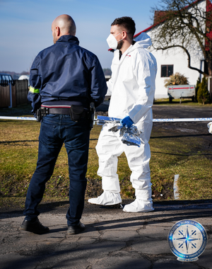 Równolegle do poszukiwań prowadzonych w terenie, policjanci dochodzeniowo - śledczy, pod nadzorem prokuratora, wykonywali czynności na miejscu zbrodni. Przy użyciu m.in. skanera 3D, technicy kryminalistyki oraz biegli z Laboratorium Kryminalistycznego KWP w Opolu, przez wiele godzin zabezpieczali ślady i dowody popełnionego przestępstwa. Szukali również przedmiotów oraz narzędzi, mogących mieć związek ze zbrodnią zabójstwa. W wielogodzinnych oględzinach uczestniczył także lekarz z Zakładu Medycyny Sądowej Uniwersyteckiego Szpitalu Klinicznego w Opolu.