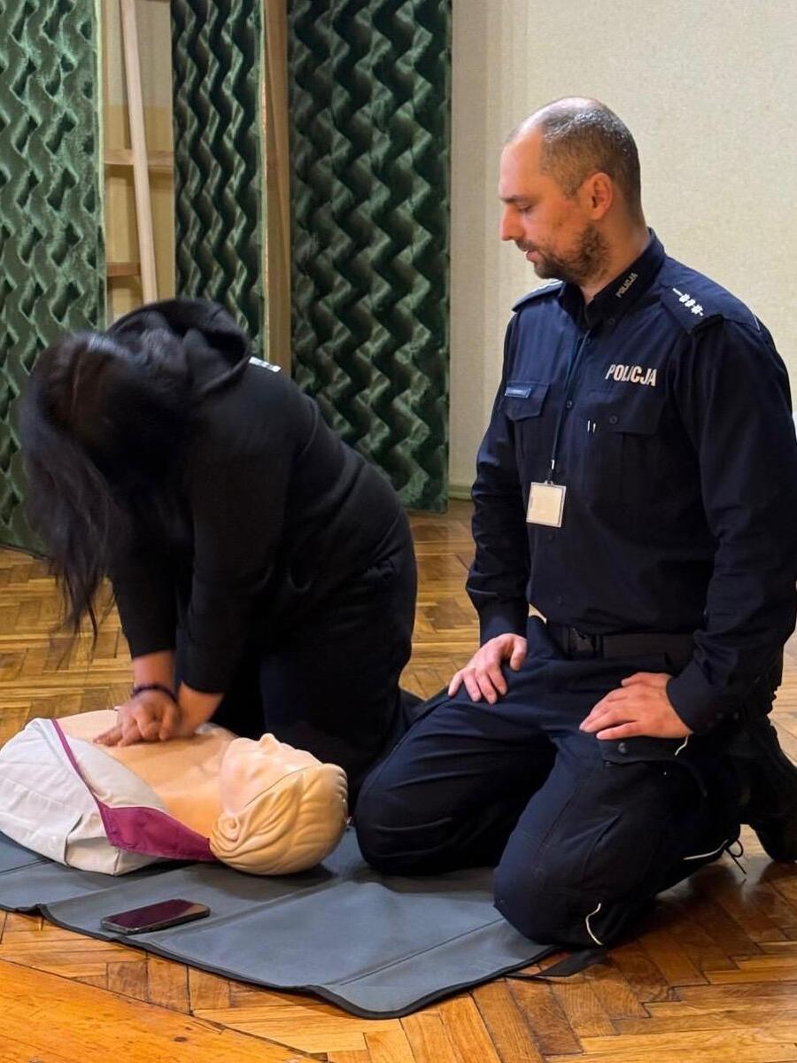 Spotkanie przebiegło w bardzo pozytywnej atmosferze, a uczniowie chętnie zadawali pytania i aktywnie uczestniczyli w ćwiczeniach. Takie działania pokazują, że nauka pierwszej pomocy może być ciekawa, angażująca i – co najważniejsze – niezwykle potrzebna.