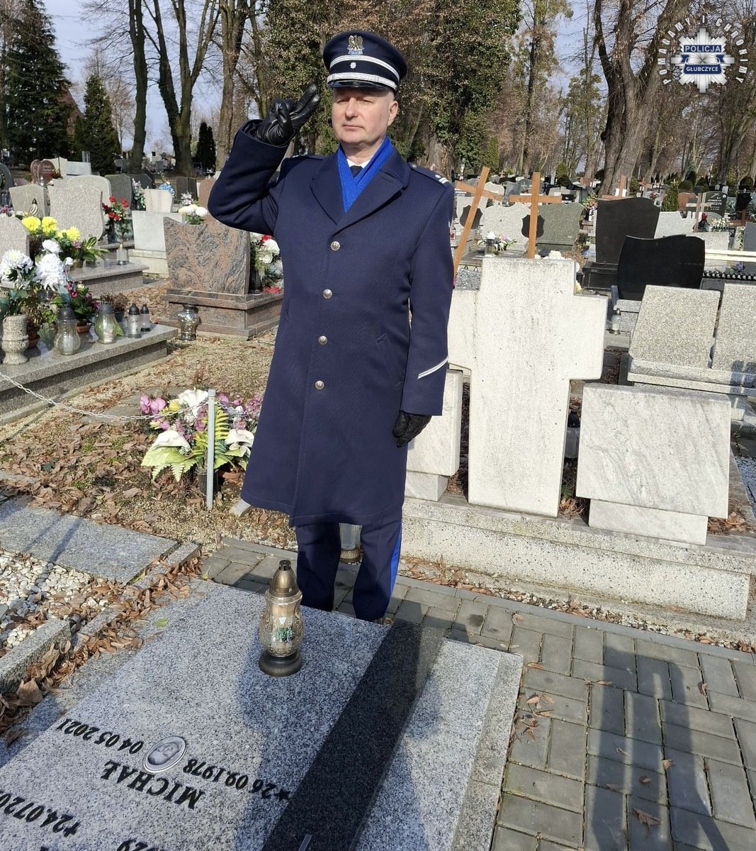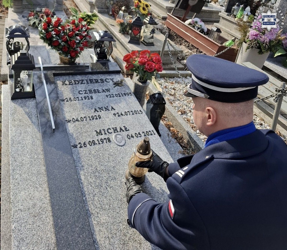 W Polsce również pamiętamy o naszych poległych koleżankach i kolegach. Wspominamy tych, którzy byli naszymi przyjaciółmi, których znaliśmy osobiście, z którymi pełniliśmy służbę, dzieliliśmy codzienne obowiązki. Tych, którzy podjęli ryzyko, ponieważ wierzyli w sens służby drugiemu człowiekowi. W duchu pamięci i wdzięczności dla tych, którzy poświęcili swoje życie w służbie drugiemu człowiekowi, Komendant Komisariatu Policji w Kietrzu podinsp. Mirosław Szymański odwiedził w Raciborzu grób śp. aspiranta Michała Kędzierskiego – policjanta, który 4 maja 2021 roku zginął, pełniąc służbę, podczas interwencji. Bohaterska postawa Michała Kędzierskiego na zawsze pozostanie symbolem odwagi, oddania i wierności rotom ślubowania policyjnego.