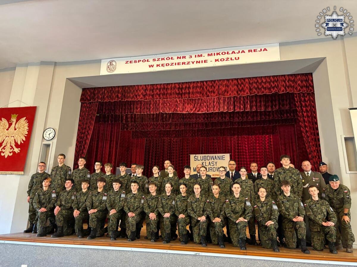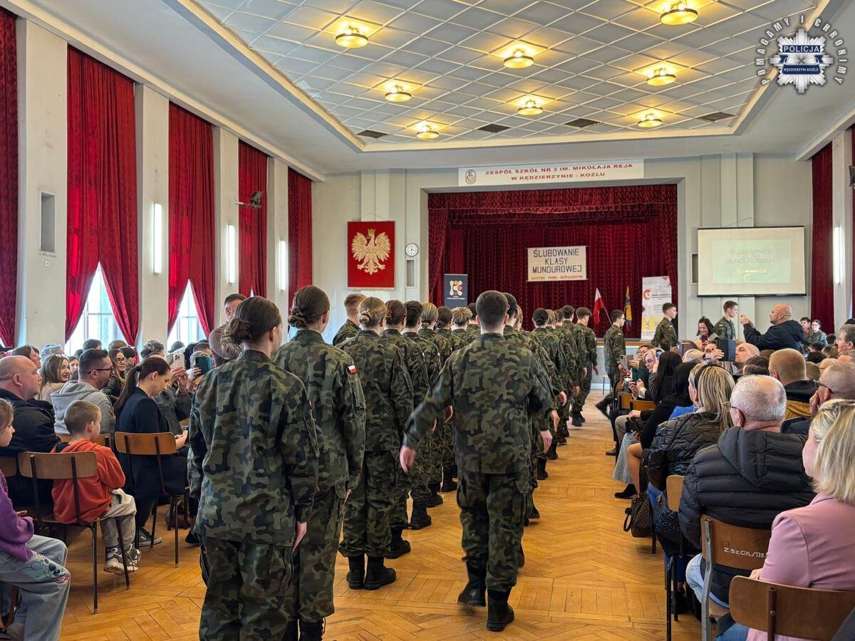 05 marca br., odbyła się uroczystość ślubowania uczniów klas mundurowych z Zespołu Szkół nr 3 im. Mikołaja Reja w Kędzierzynie-Koźlu. W uroczystości uczestniczył Zastępca Komendanta Powiatowego Policji w Kędzierzynie-Koźlu młodszy inspektor Dariusz Mazurek oraz komendanci służb mundurowych, reprezentanci władz lokalnych, przedstawiciele kuratorium, a także rodziny licealistów.