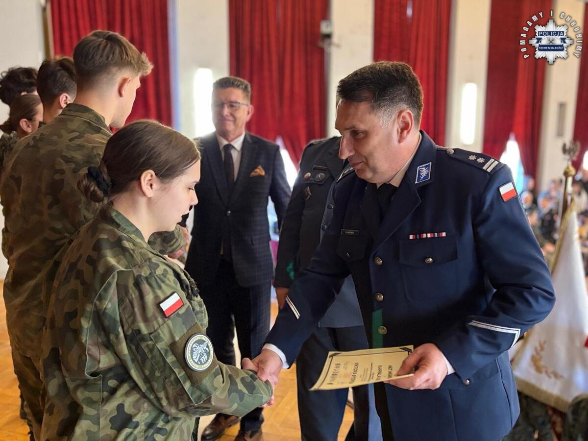 Najważniejszym punktem uroczystości było wypowiedzenie przez uczniów klas I roty ślubowania, do której młodzi ludzie podeszli z wielką powagą. Po ślubowaniu adepci odebrali z rąk dyrektora szkoły oraz przedstawicieli służb mundurowych akty nadania kolejnych stopni awansu.