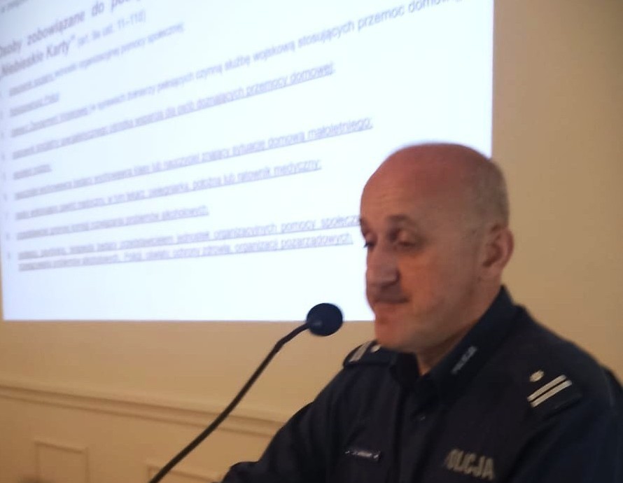 Prelegenci omówili zagadnienia dotyczące stosowania środków izolacyjnych, wydawanych przez funkcjonariuszy wobec osoby stosującej przemoc domową. Podczas szkolenia policyjny psycholog przypomniał również najczęściej występujące mechanizmy obronne, wystepujące u osób pokrzywdzonych.