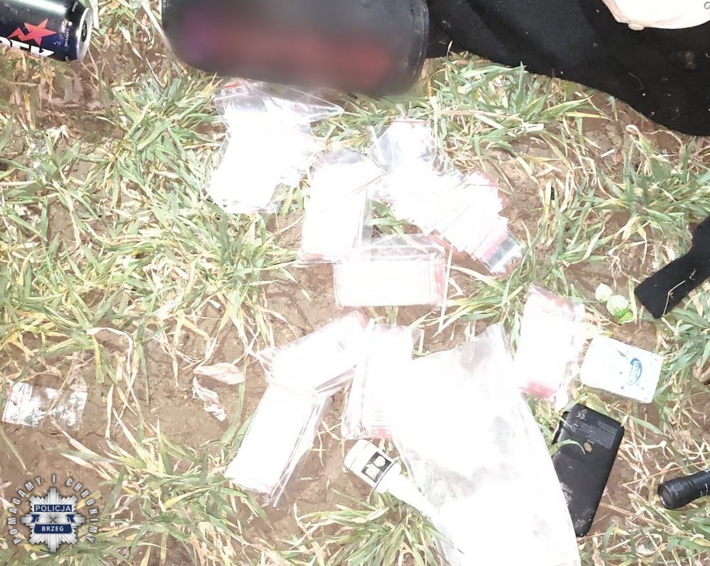 Już po chwili na miejscu pojawili się kryminalni. Funkcjonariusze grupy dochodzeniowo-śledczej wykonali dokumentację fotograficzną i oględziny miejsca zdarzenia oraz zabezpieczyli materiały dowodowe i podejrzane substancje w woreczkach. Śledczy zabezpieczyli prawie 1000 porcji amfetaminy, które teraz trafią do policyjnego laboratorium.
