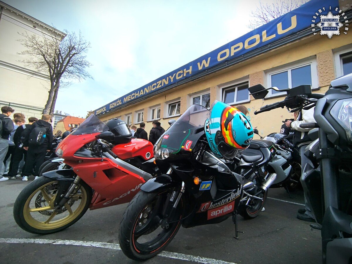 Miłośnicy jednośladów spotkali się w Zespole Szkół Mechanicznych w Opolu z okazji rozpoczęcia sezonu motocyklowego. Wydarzenie otworzył Dyrektor placówki Pan Bogusław Januszko. W spotkaniu, oprócz licznych fanów motoryzacji, uczestniczyli również policjanci z Komendy Wojewódzkiej Policji w Opolu - kom. Tomasz Kukułka oraz podkom. Adrian Stasina. Funkcjonariusze opolskiej drogówki omówili najczęstsze błędy popełniane przez motocyklistów i motorowerzystów oraz po krótce omówili zmienione w ostatnich tygodniach przepisy ruchu drogowego.