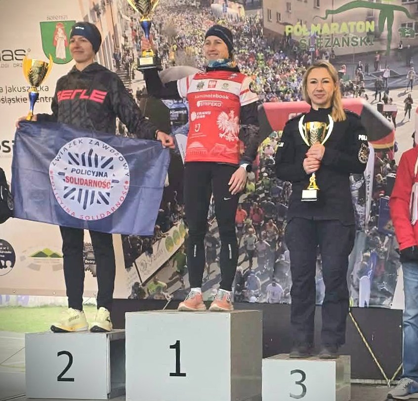 Asp. Beata Szatka z Wydziału Konwojowego Komendy Wojewódzkiej Policji w Opolu po raz kolejny udowadnia że jest w świetnej formie. Mundurowa zajęła trzy miejsca na podium w Półmaratonie Ślężańskim, którego trasa była pełna podbiegów i górskich utrudnień. Policjantka jest doskonałym dowodem na to, że determinacja i siła charakteru to cechy, które łączą sportową pasję z codzienną służbą w niebieskim mundurze. Funkcjonariuszka należy do Reprezentacji Policji w lekkoatletyce, a już na początku maja weźmie udział w Mistrzostwach Europy Policji w Maratonie, które odbędą się w Pradze. Beata, trzymamy kciuki i życzymy kolejnych sukcesów!