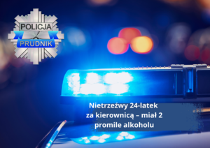 Prudniccy policjanci zatrzymali w nocy kierującego, który kierował autem pod wpływem alkoholu. Badanie trzeźwości wskazało, że miał aż 2 promile w organizmie. Za popełnione przestępstwo, jakim jest jazda w stanie nietrzeźwości, grozi mu kara do 3 lat więzienia, zakaz prowadzenia pojazdów, wysoka grzywna, a także konfiskata samochodu.