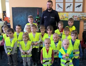 Asp. sztab. Dawid Myśliński - dbając o bezpieczeństwo najmłodszych - rozdawał dzieciom kamizelki odblaskowe. Wszystko to dzięki współpracy dzielnicowego z Urzędem Gminy i jedną z miejscowych firm. Odblaski trafiły już do wszystkich przedszkolaków. To one sprawią, że każdy maluch będzie bardziej widoczny na drodze.
