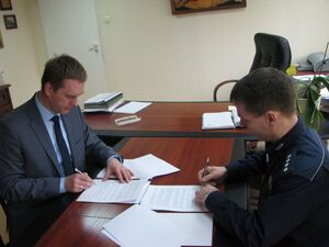 Zastępca Komendanta Powiatowego Policji w Strzelcach Opolskich nadkom. Arkadiusz Chętnicki oraz Pan Łukasz Jastrzembski-Burmistrz Leśnicy podpisali porozumienie w sprawie finansowania dodatkowych patroli policyjnych. Funkcjonariusze będą pełnić służbę na terenie gminy Leśnica. Na ten cel przeznaczono 10 000 złotych.